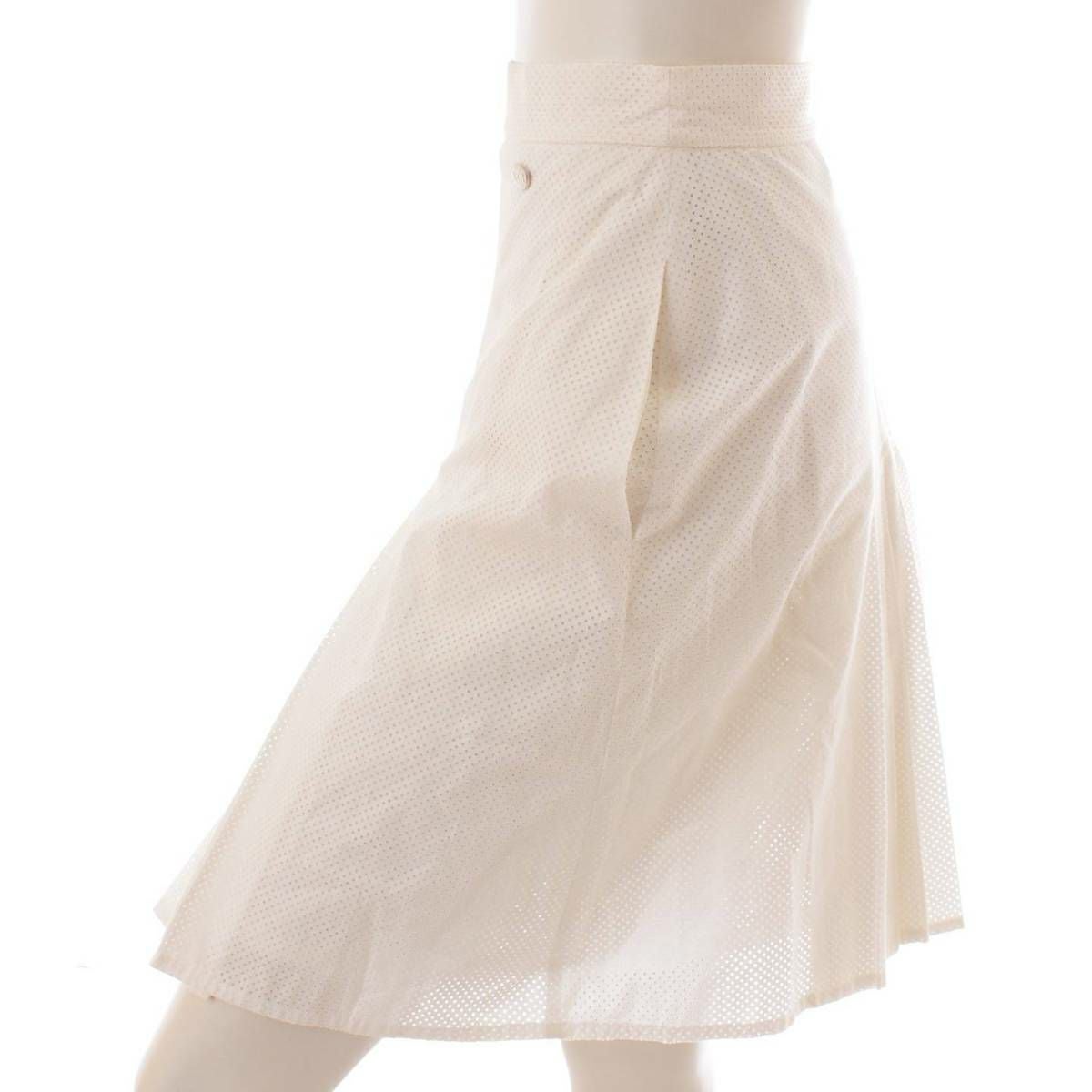 シャネル ココマーク パンチング プリーツ スカート P45584 ホワイト 34