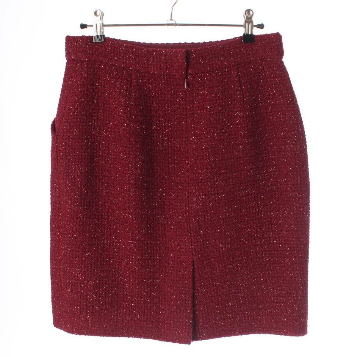 シャネル Chanel ココマーク ラインストーン ラメ ツイード スカート P73642 レッド 38