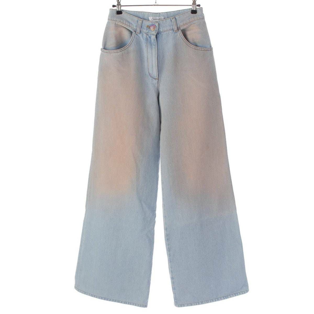シャネル 24C ココマーク ラインストーン デニム ワイドパンツ P76402 グラデーション 34