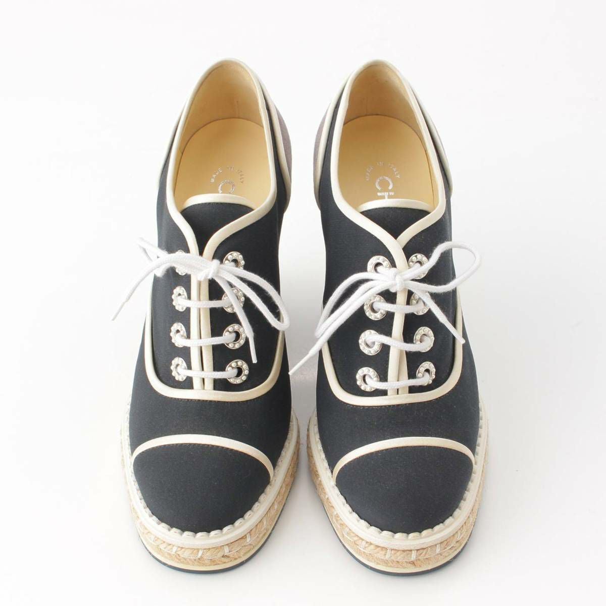 シャネル Chanel レースアップ エスパドリーユ 厚底 ウェッジソール シューズ G31555 ブラック 38