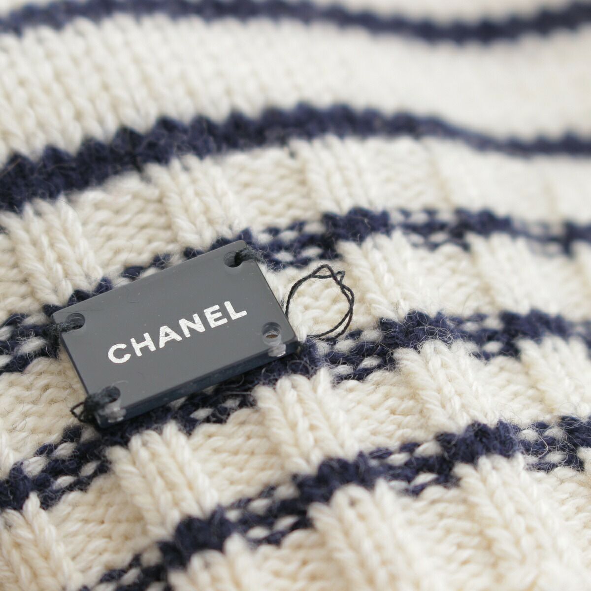シャネル 03P カシミヤ×コットン ボーダー ニット トップス P21283 ホワイト×ブラック 38