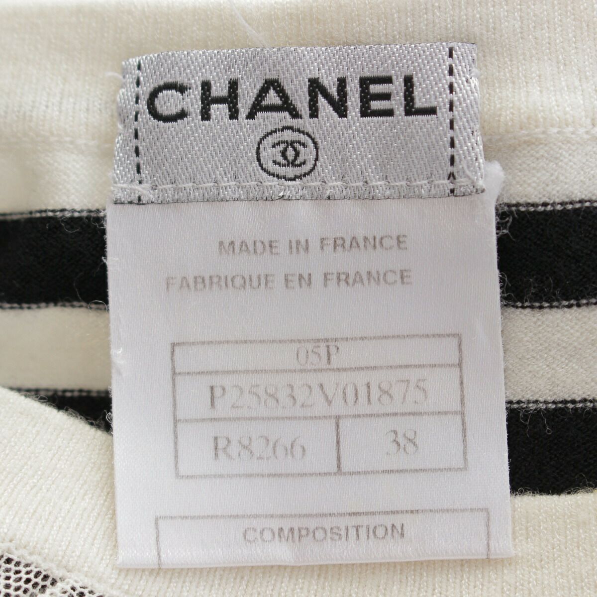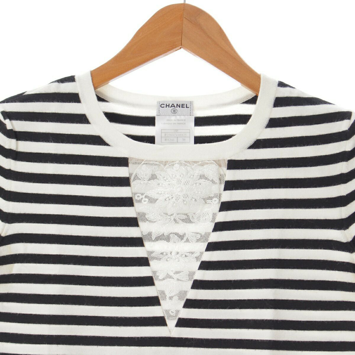 シャネル 05P ココプレート ボーダー 半袖 カットソー P25832 ブラック×ホワイト 38