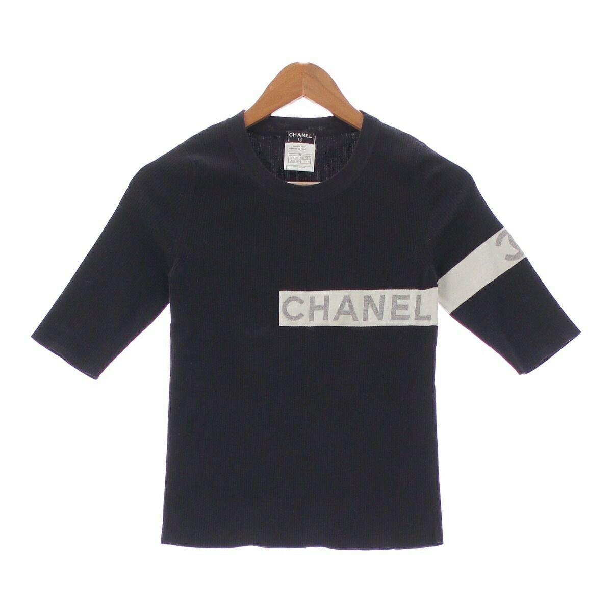 シャネル 08P ココマーク ロゴ コットン 半袖ニット カットソー P33161K00796 ブラック 34