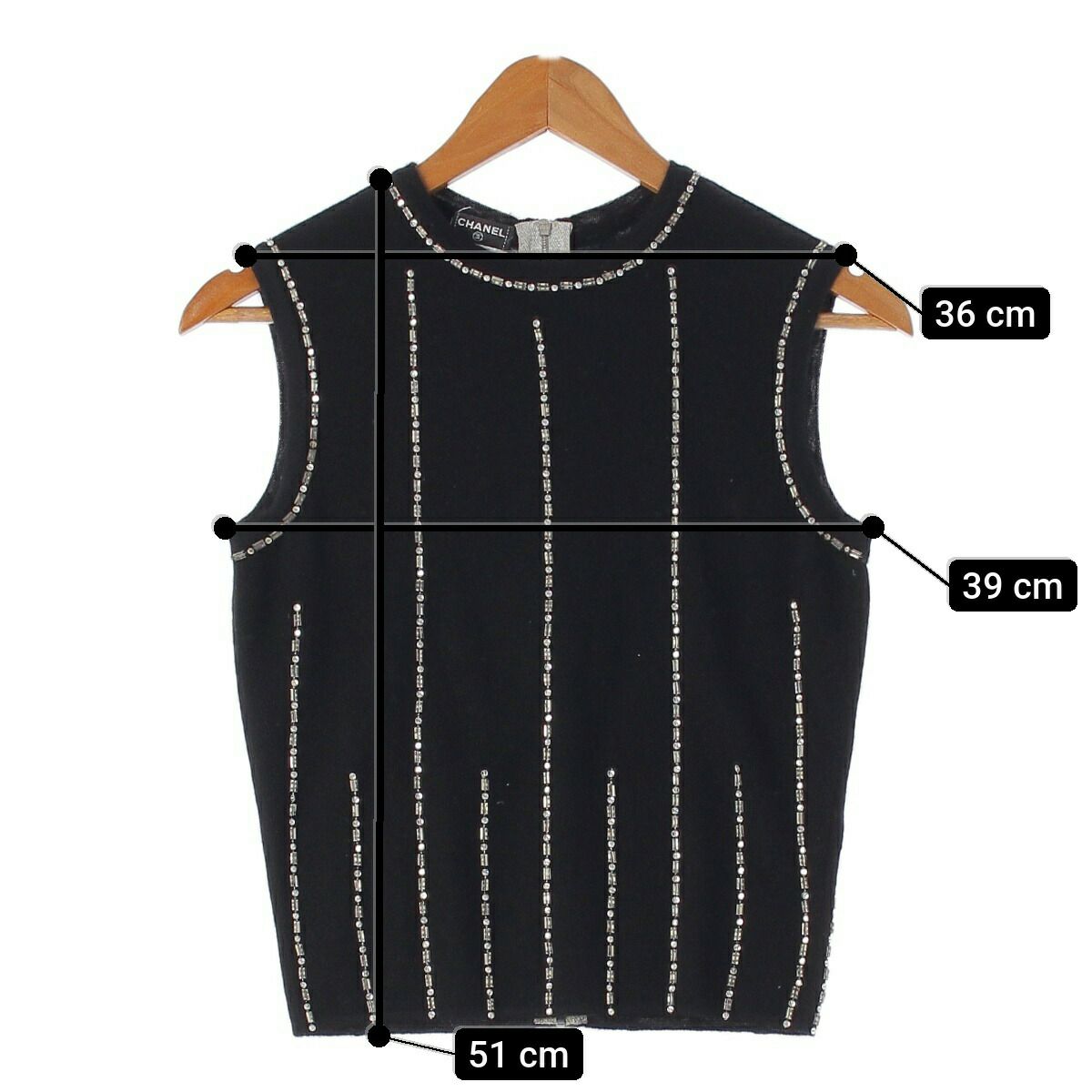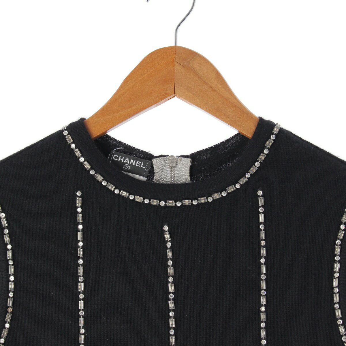 シャネル 02A バックジップ カシミヤニット スパンコール ビーズ P19931 ブラック 38