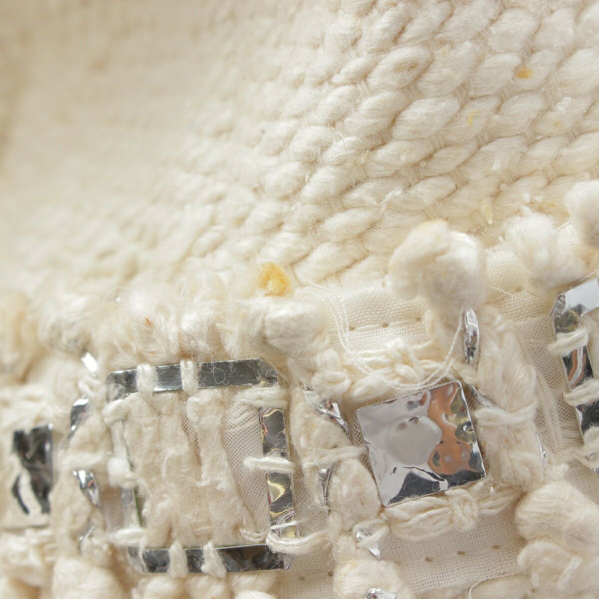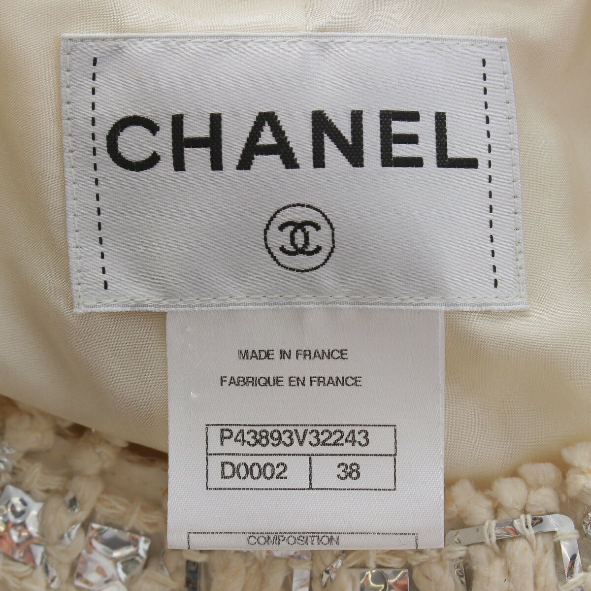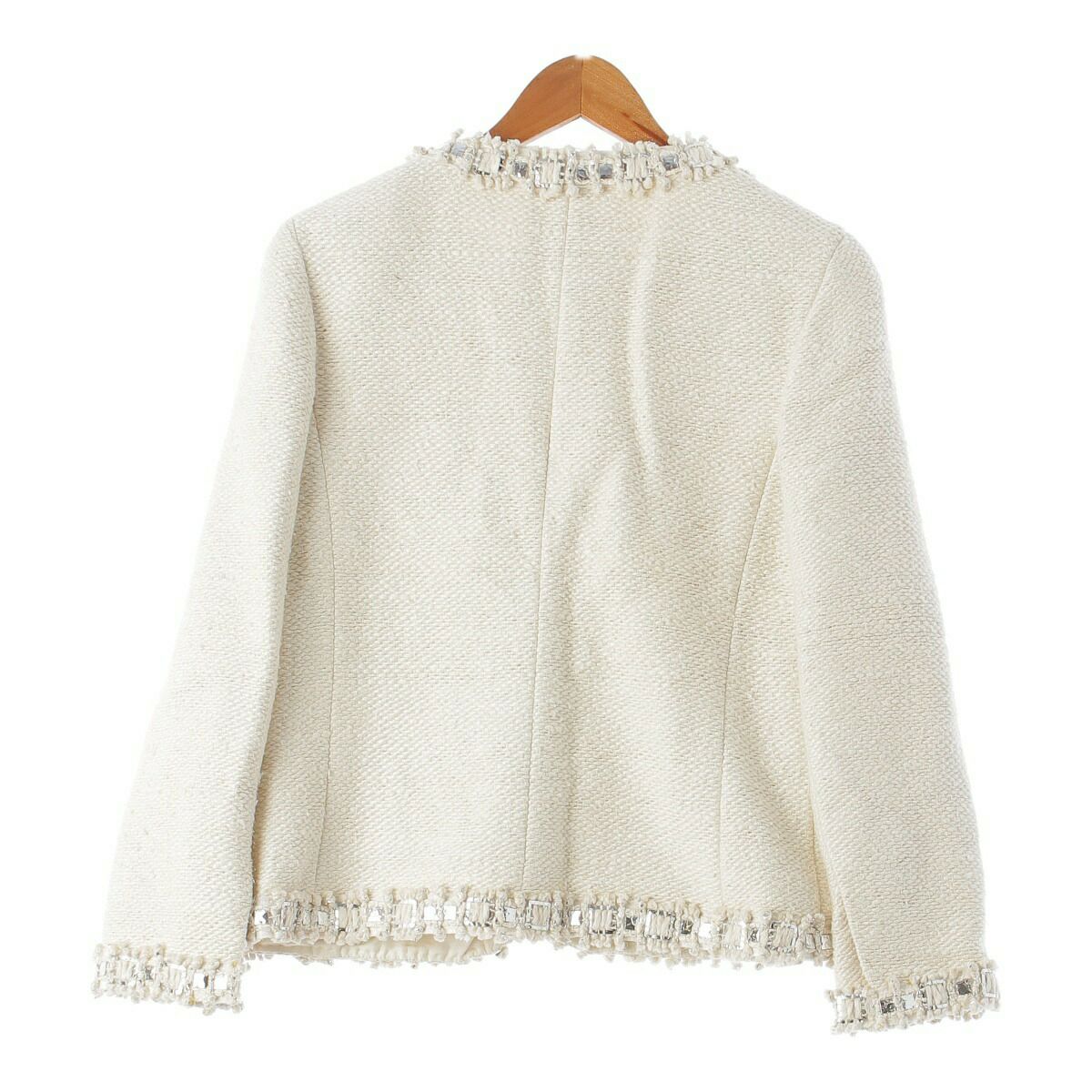 シャネル ビジュー ツイード ノーカラージャケット スカート セットアップ P43893 ベージュ 38