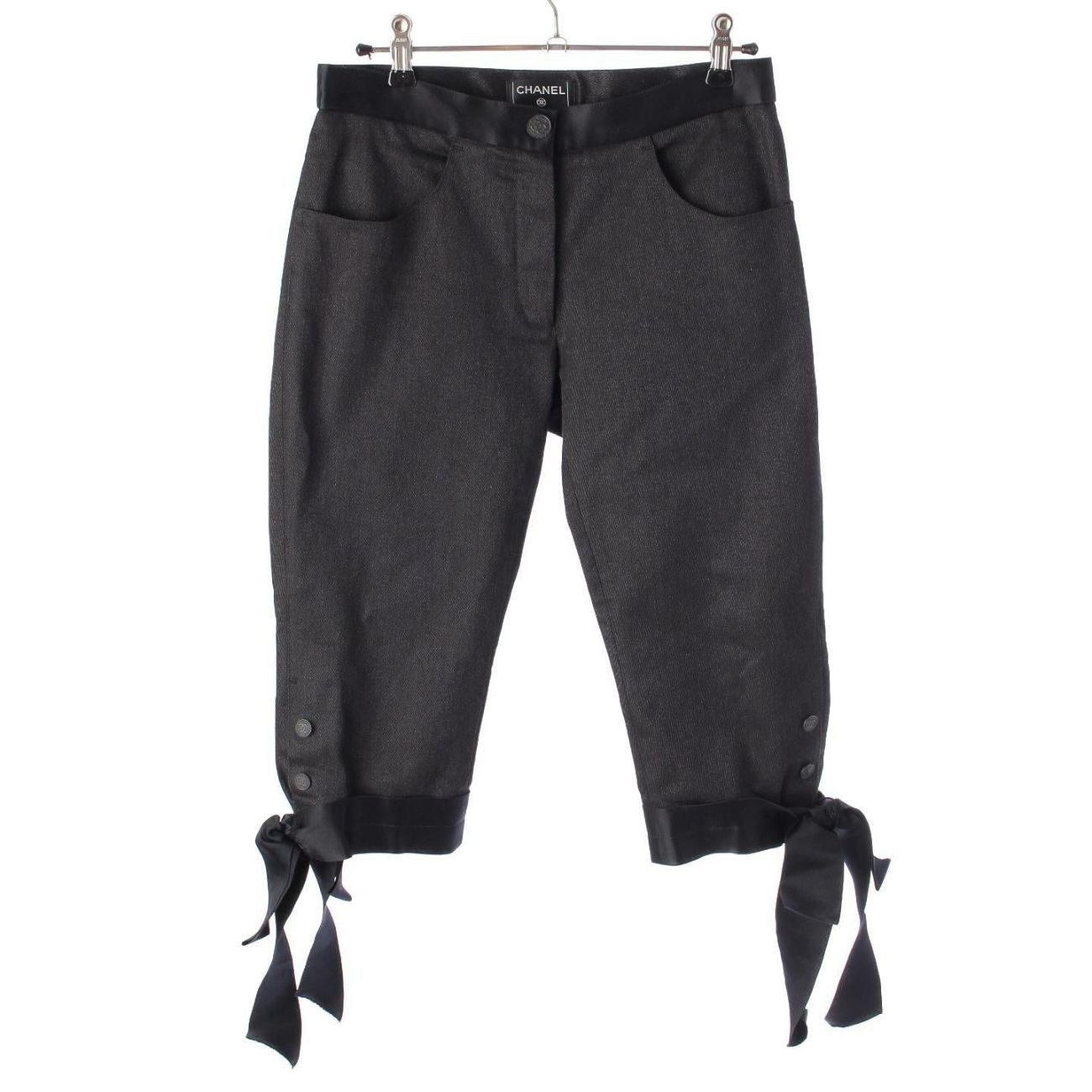 シャネル 05A ココマークボタン コットン×シルク リボン付きパンツ P26912 ブラック 34