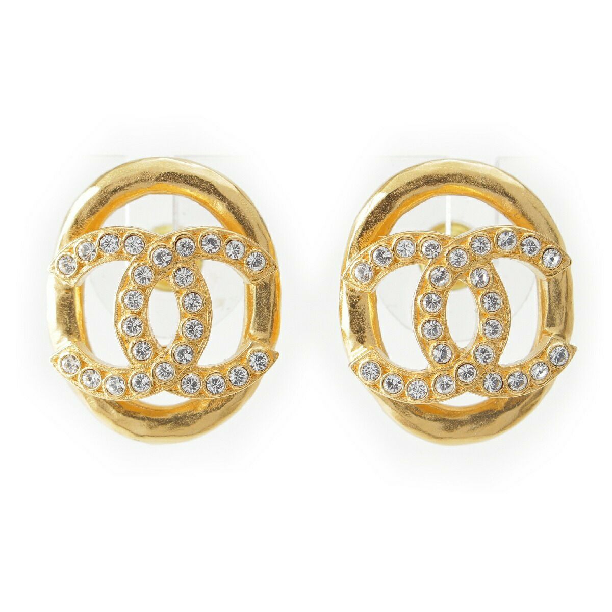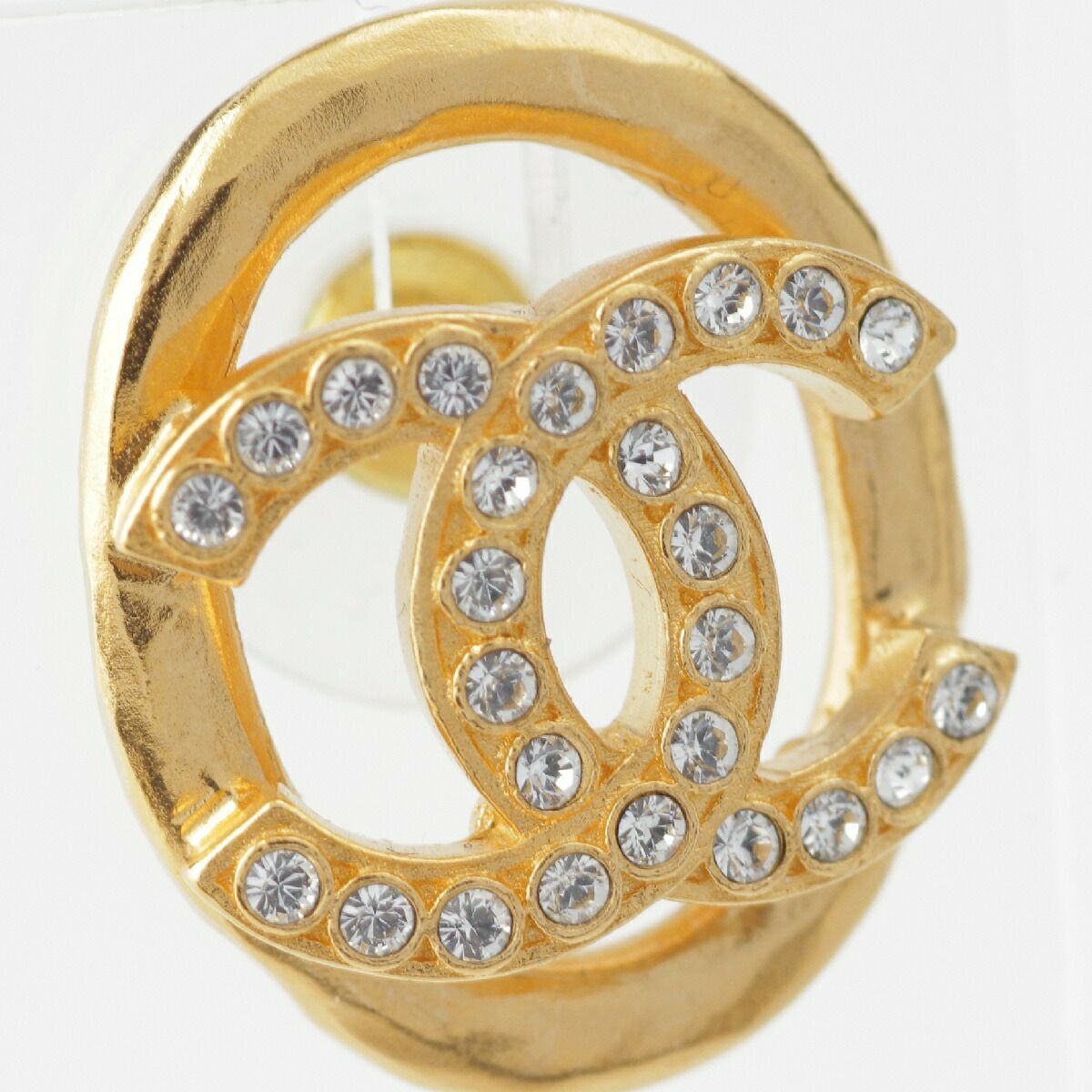 シャネル F22A ビジューココマーク ピアス サークル ラインストーン GPゴールド【中古】【正規品保証】