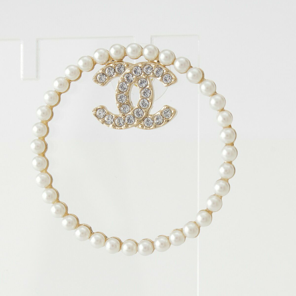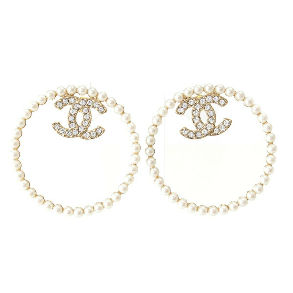 シャネル B22B ココマーク ラインストーン パール フープピアス イヤリング GPゴールド【中古】【正規品保証】