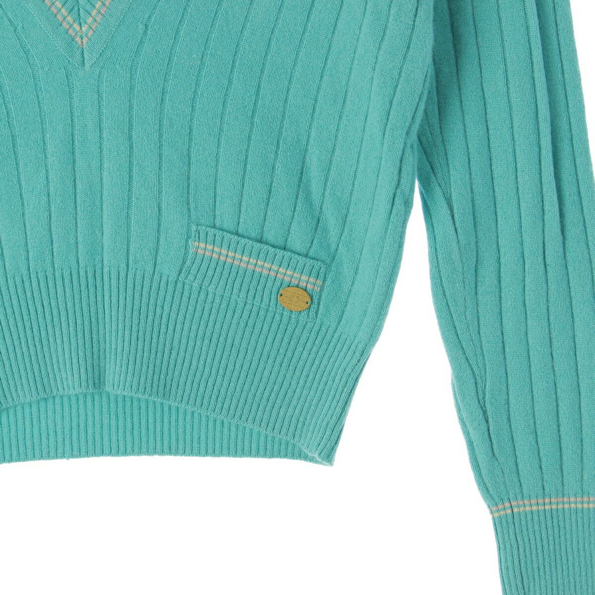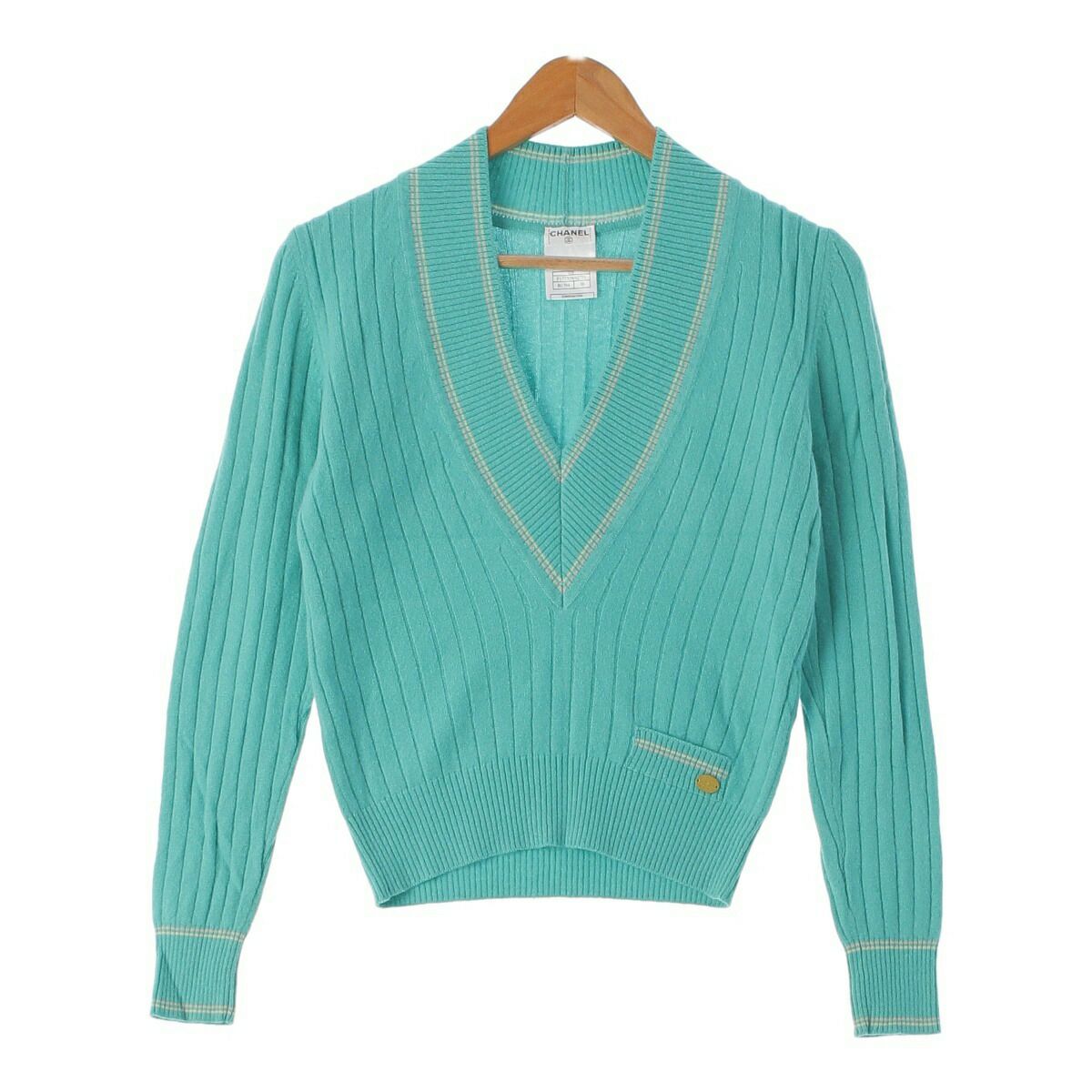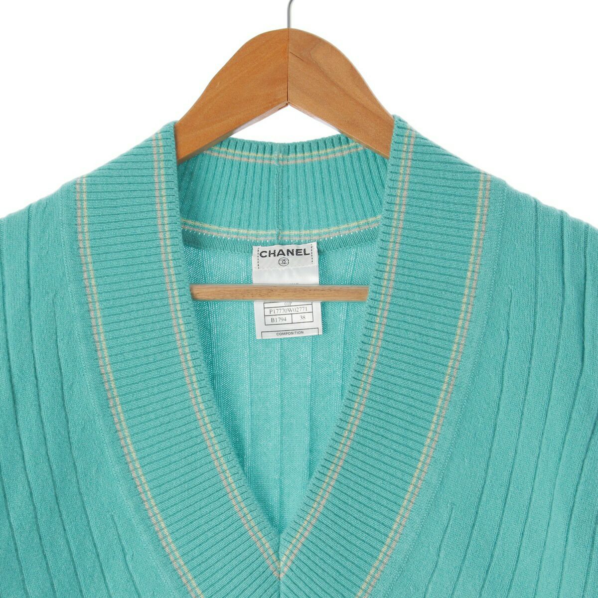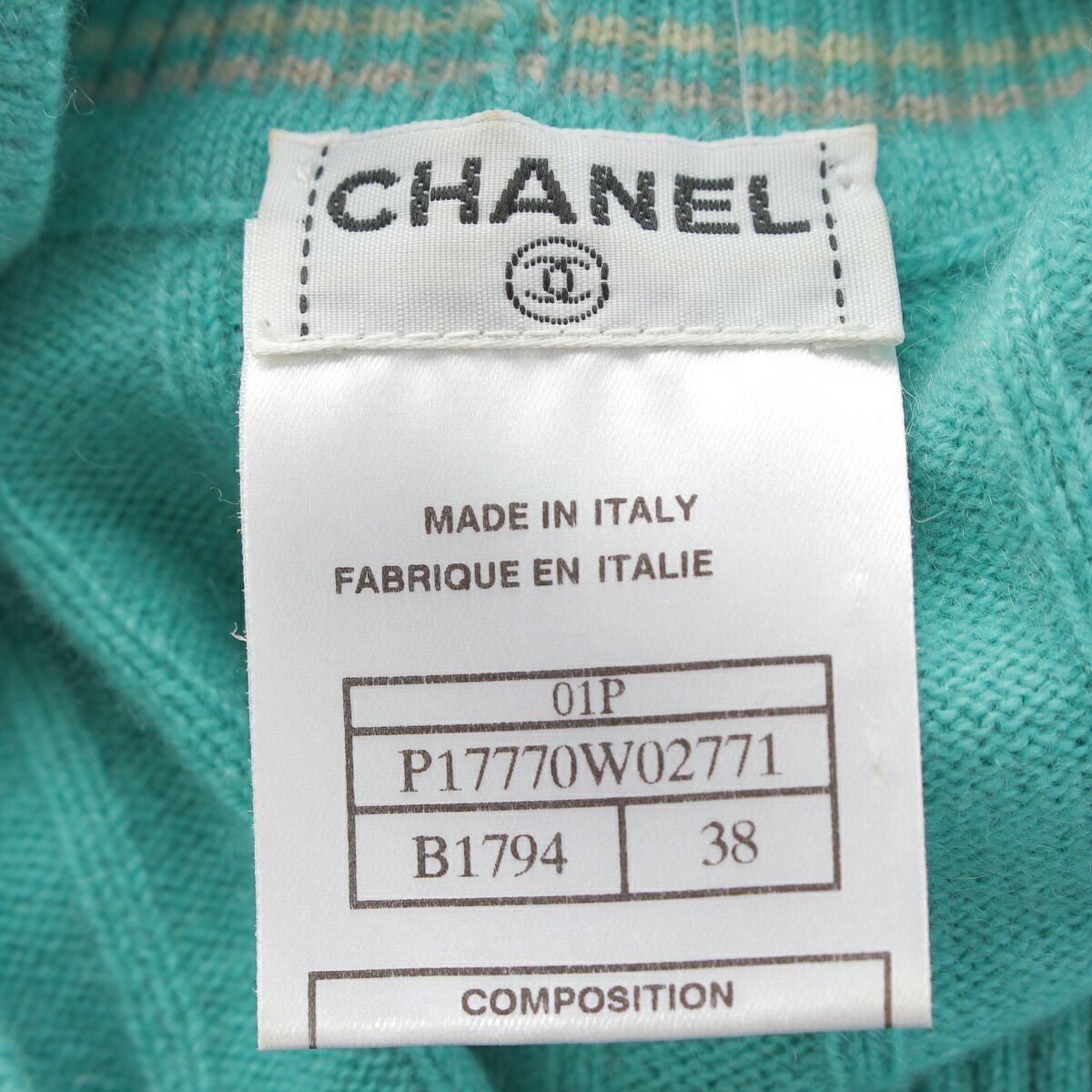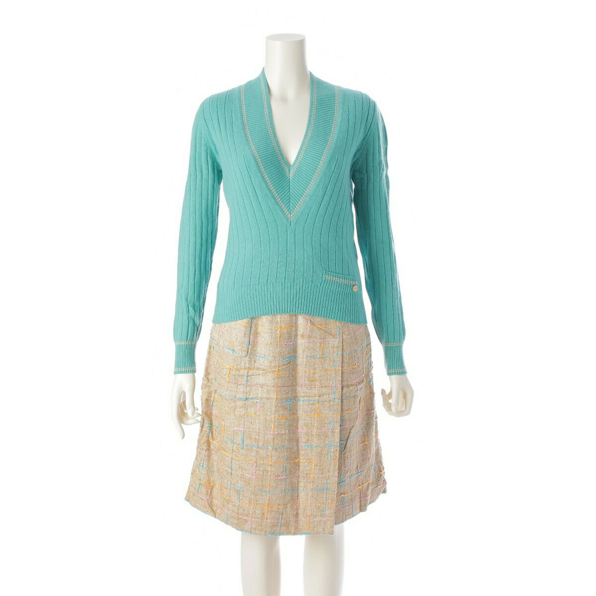 シャネル 01P カシミヤ ツイード ニット セットアップ P17770 ターコイズブルー 38【中古】【正規品保証】