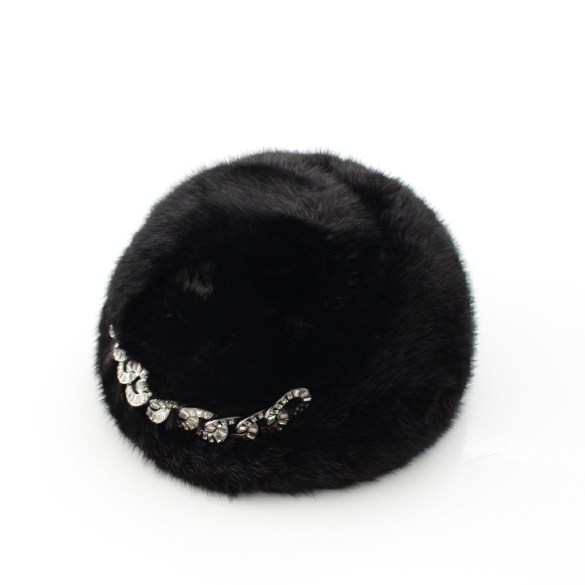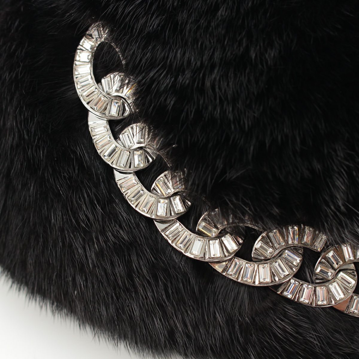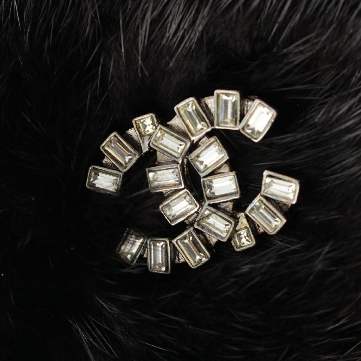 シャネル 06A ミンク ココマーク チェーン ビジュー ミンクファー ハット 帽子 ブラック M