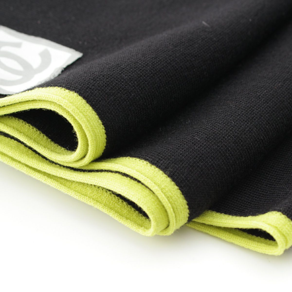シャネル スポーツライン カシミヤ混 ココマーク レザーパッチ マフラー ブラック