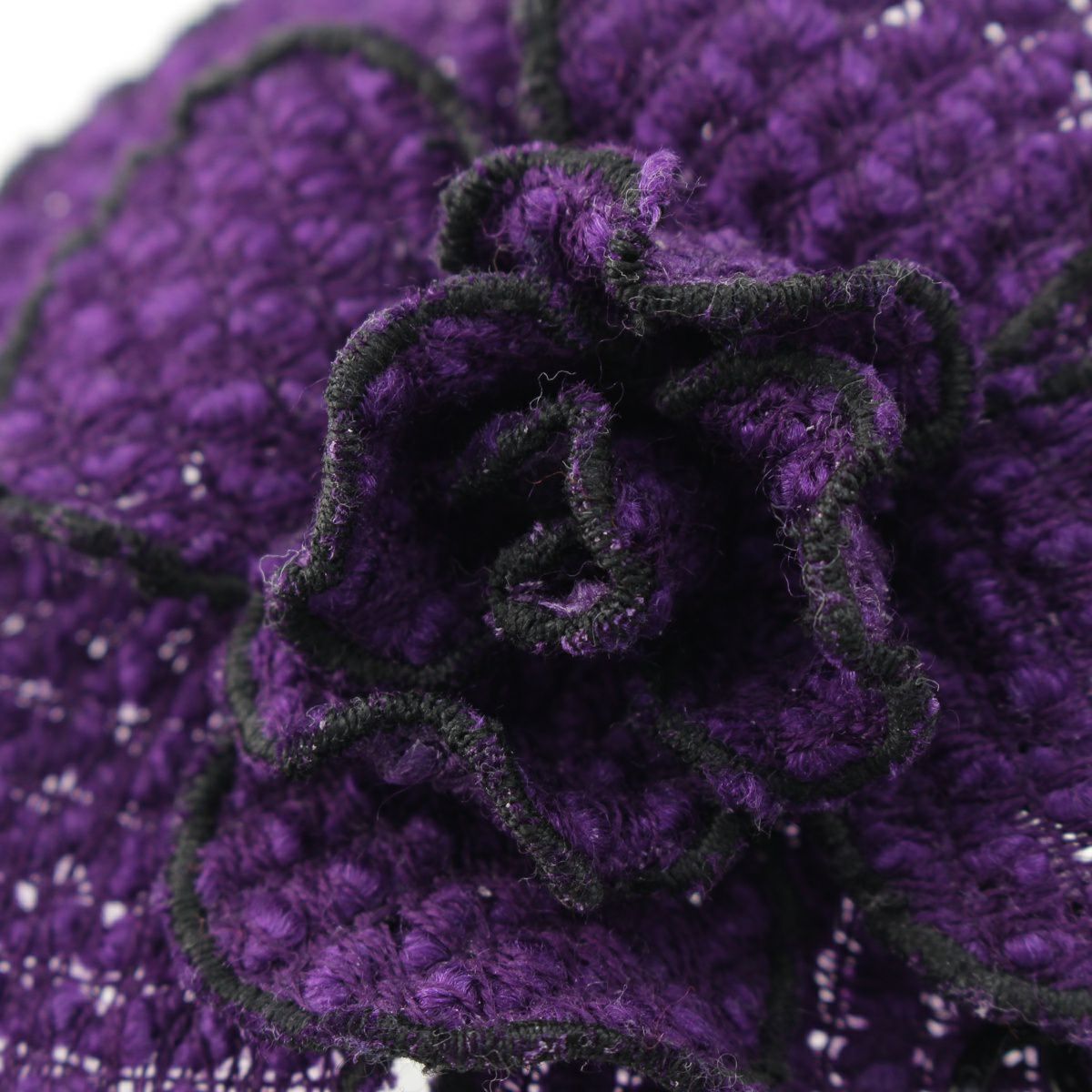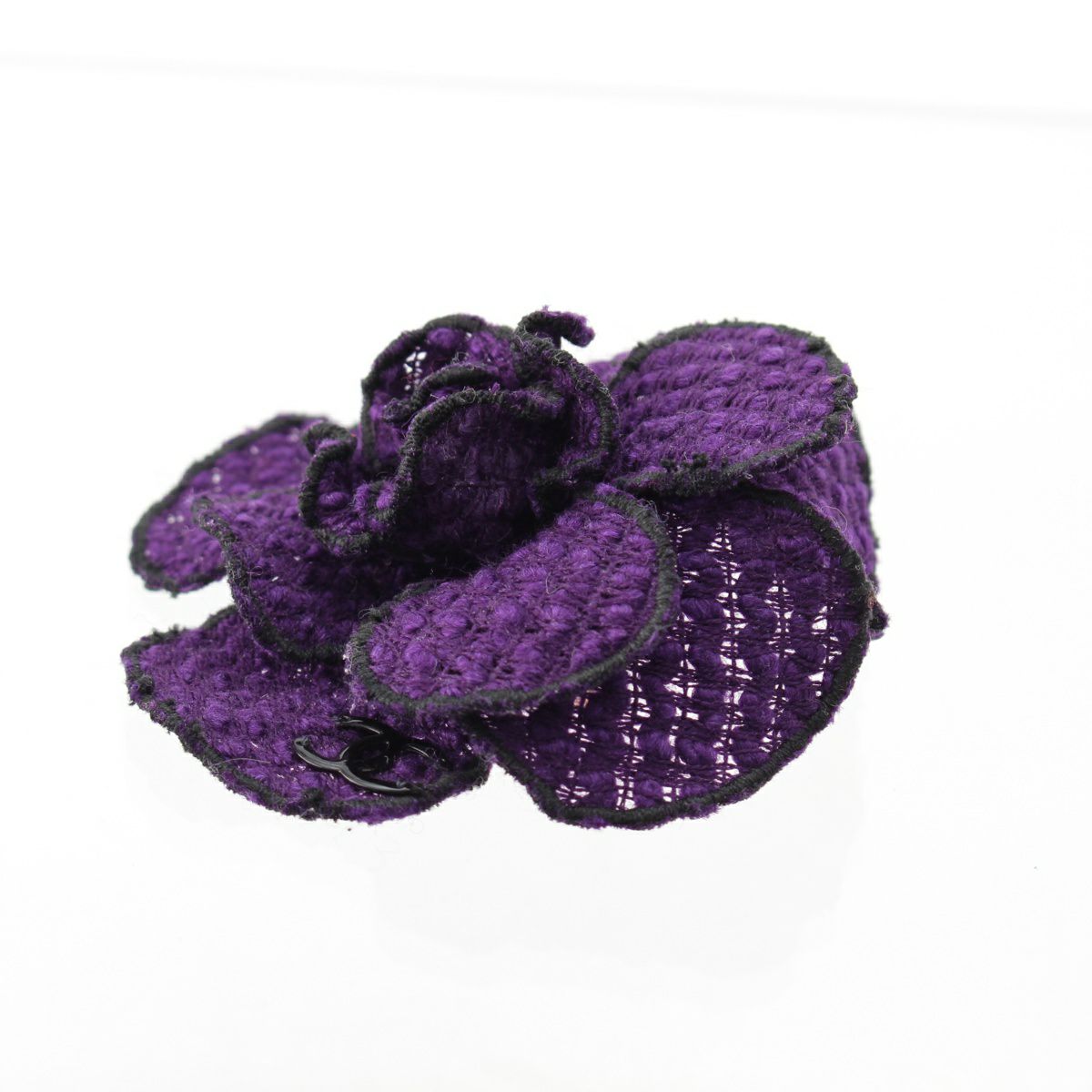 シャネル ツイード ココマーク トリム カメリア ブローチ コサージュ アクセサリー パープル