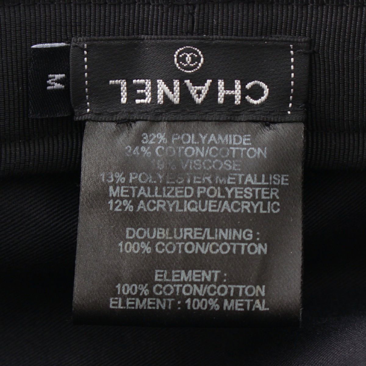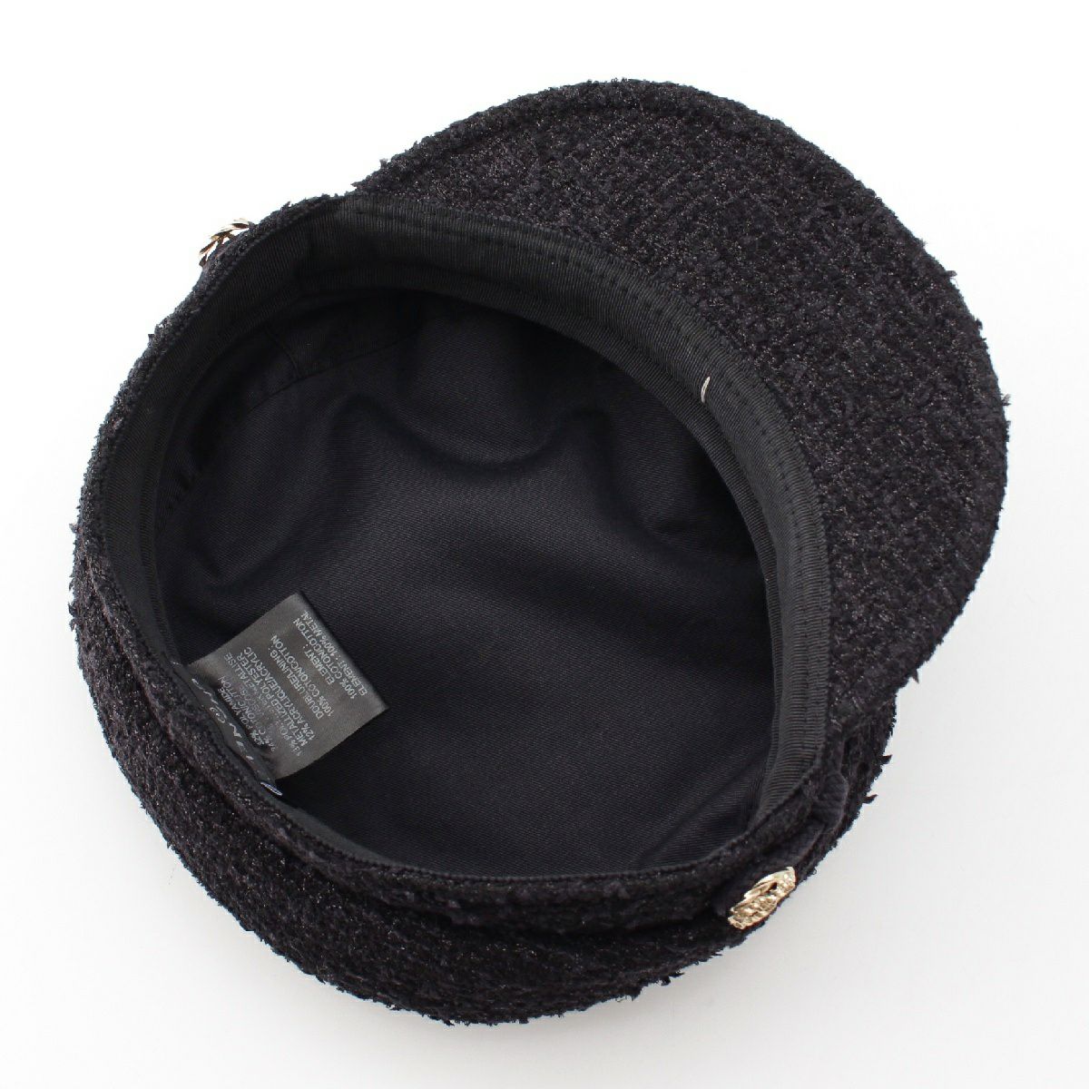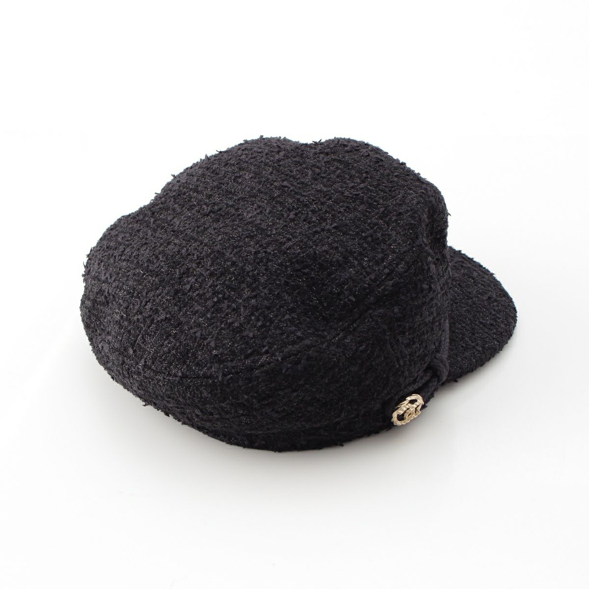 シャネル ツイード コットン ココマーク金具 キャスケット 帽子 ブラック M