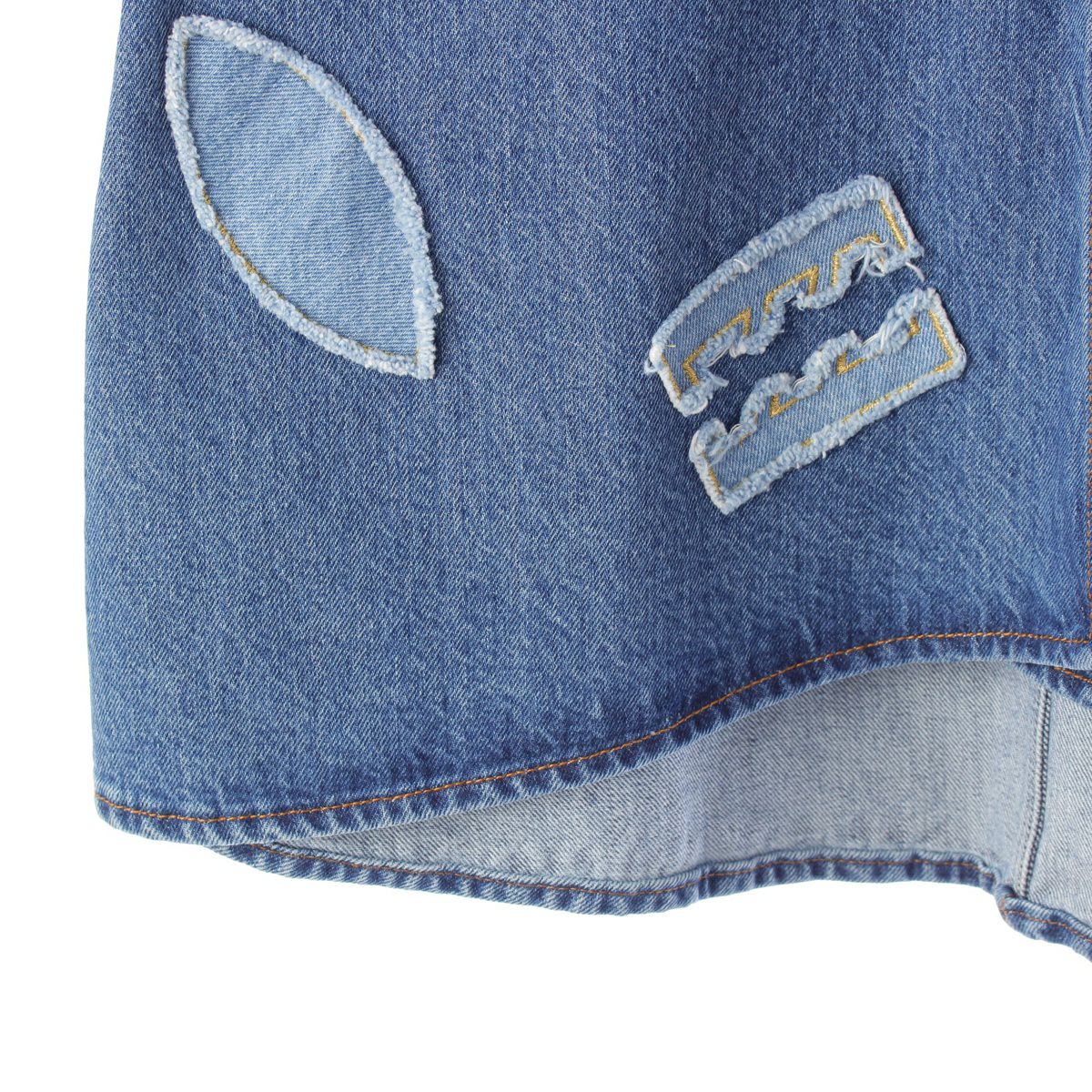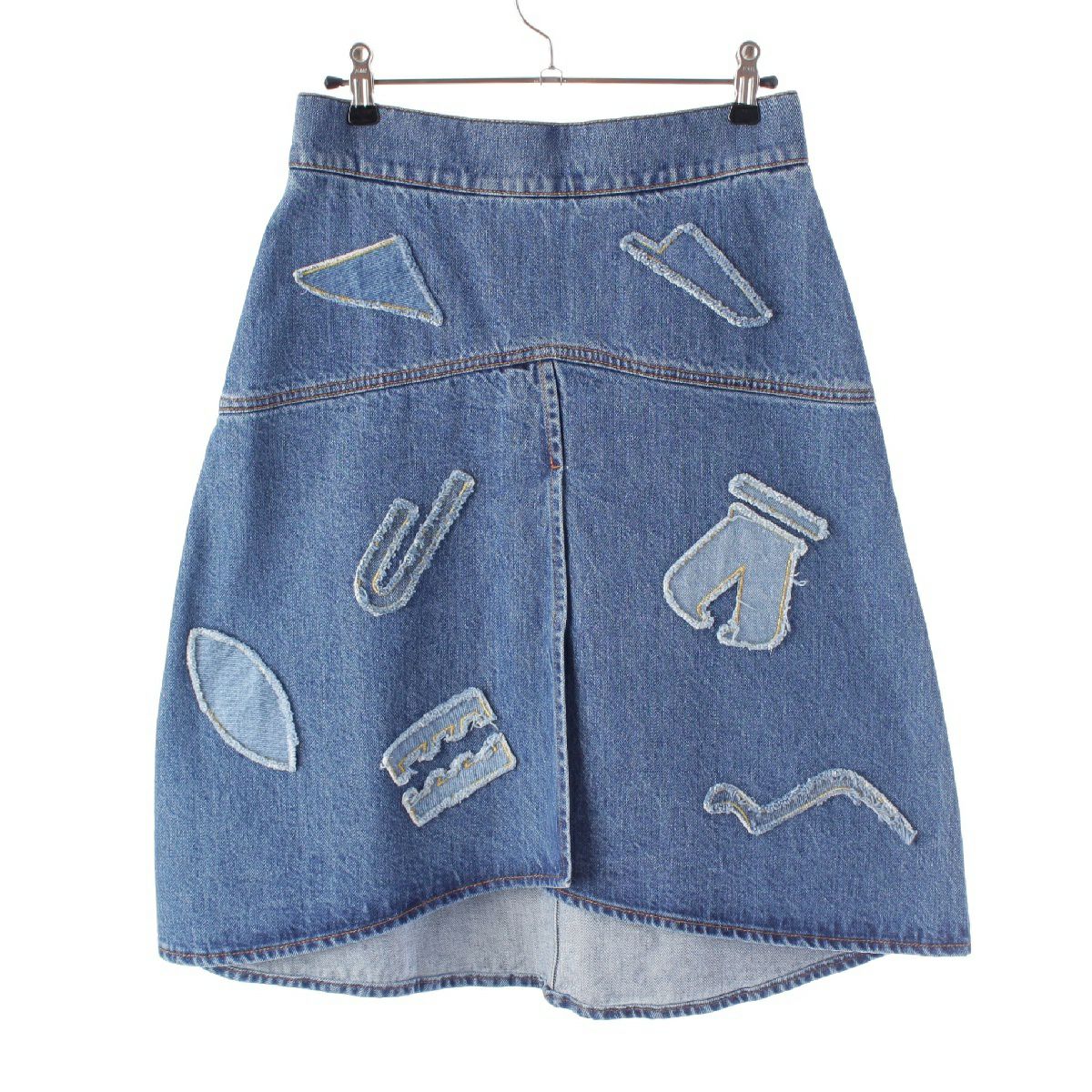 シャネル コットン パッチワーク スリット デニム スカート P61825 インディゴ 38