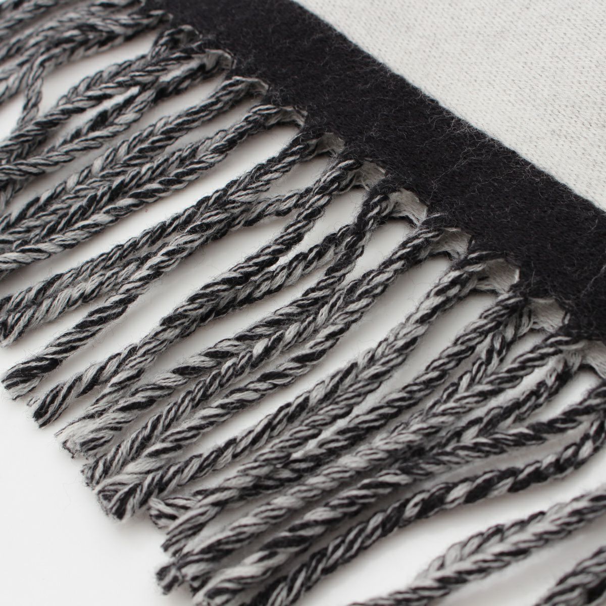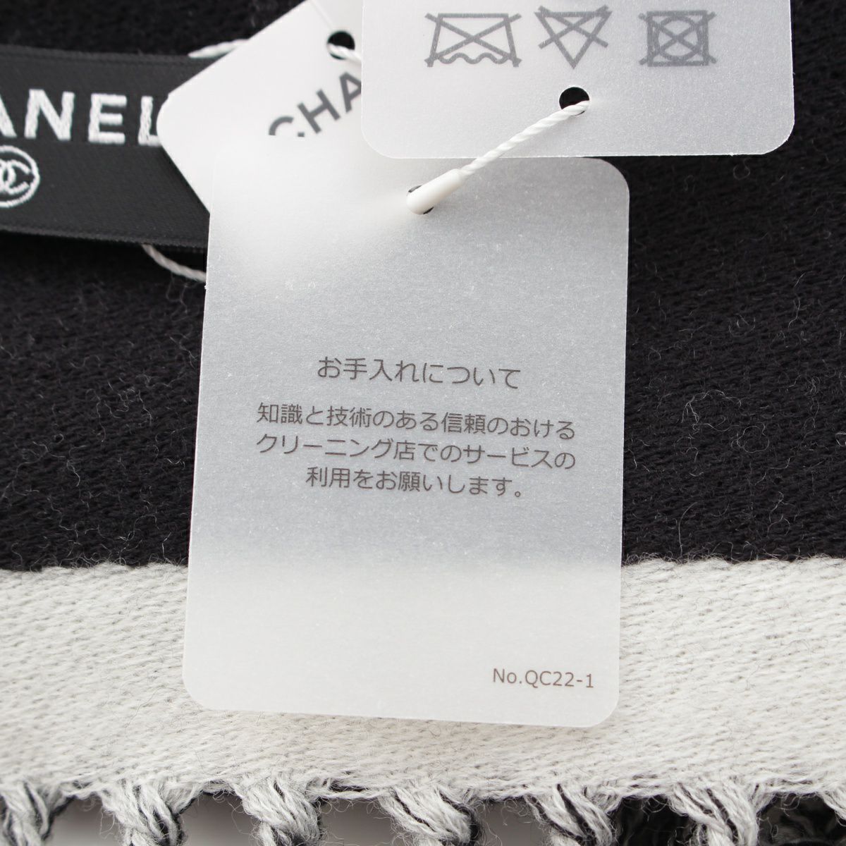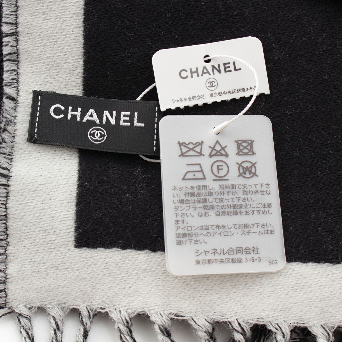 シャネル 24AW ウール ココマーク フリンジ マフラー ストール ブラック×グレー