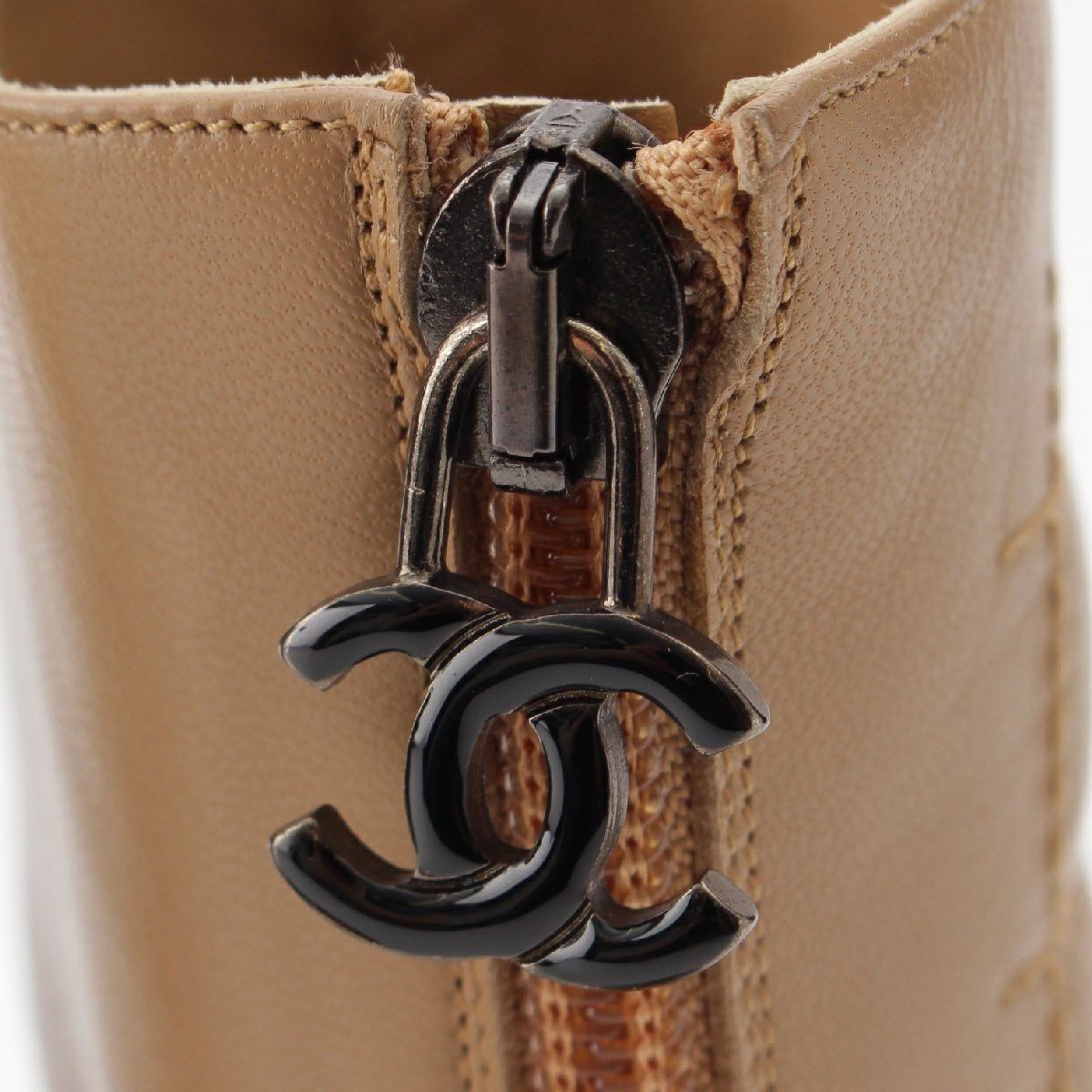 シャネル レザー ココマーク チョコバー アンクル ショート ヒール ブーツ ポインテッドトゥ バイカラー ベージュ 37