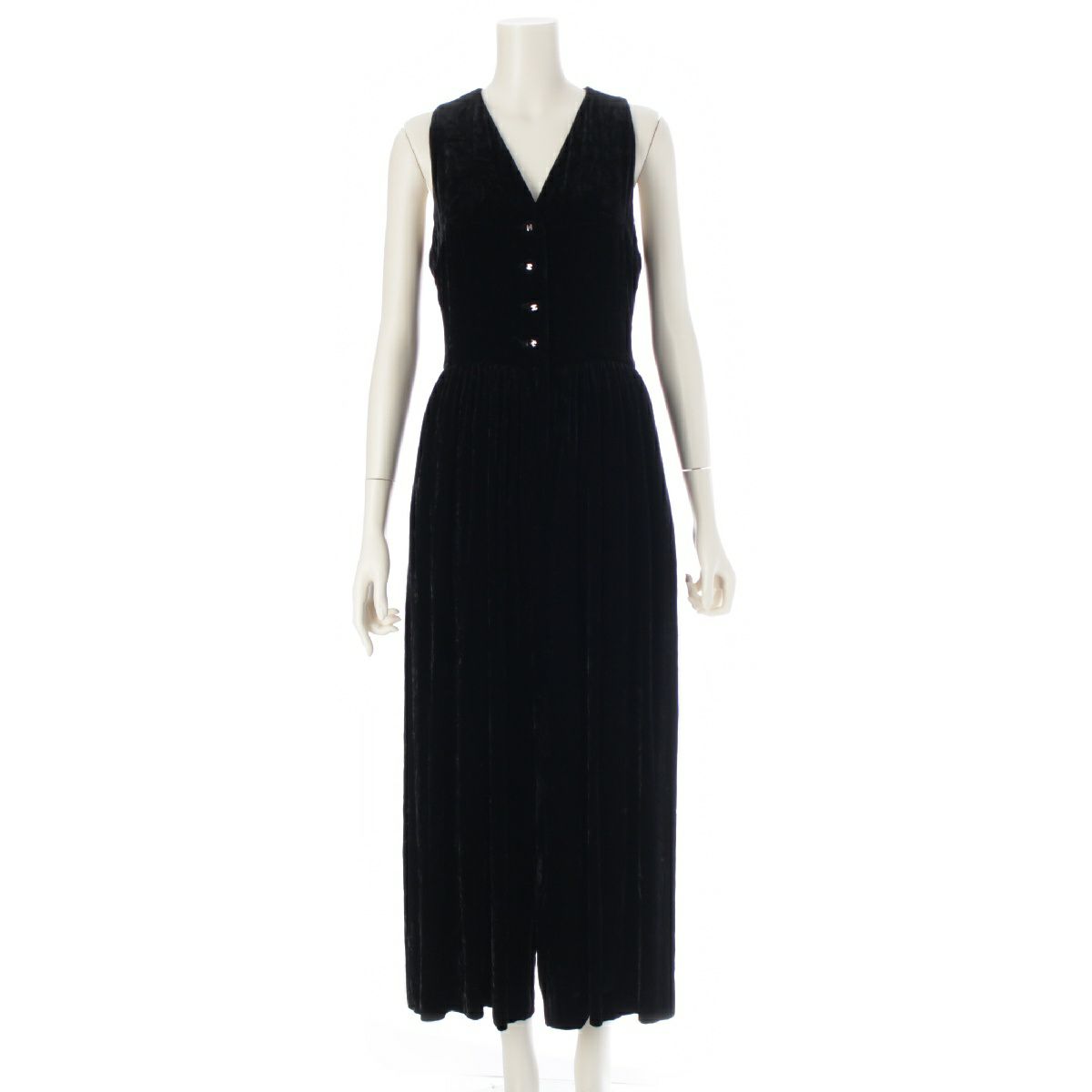 シャネル 96P ベルベット ベロア ヴィンテージ ココマークボタン ジャンプスーツ オーバーオール オールインワン P06542 ブラック 38