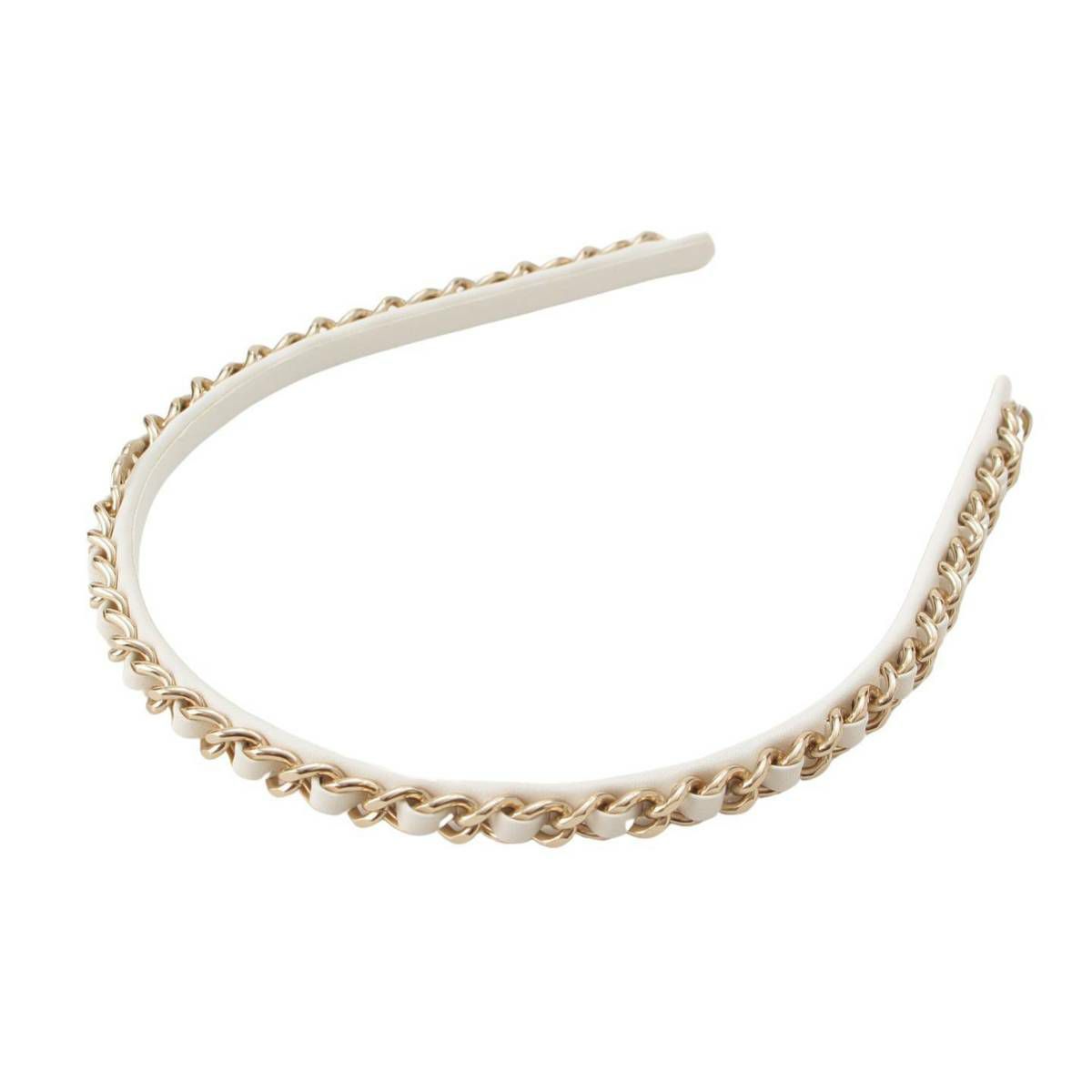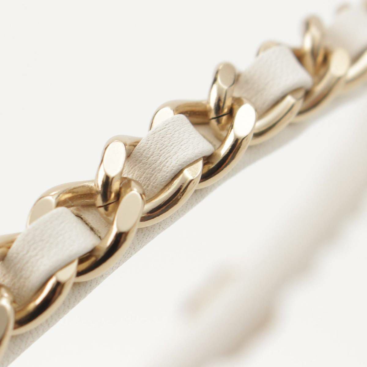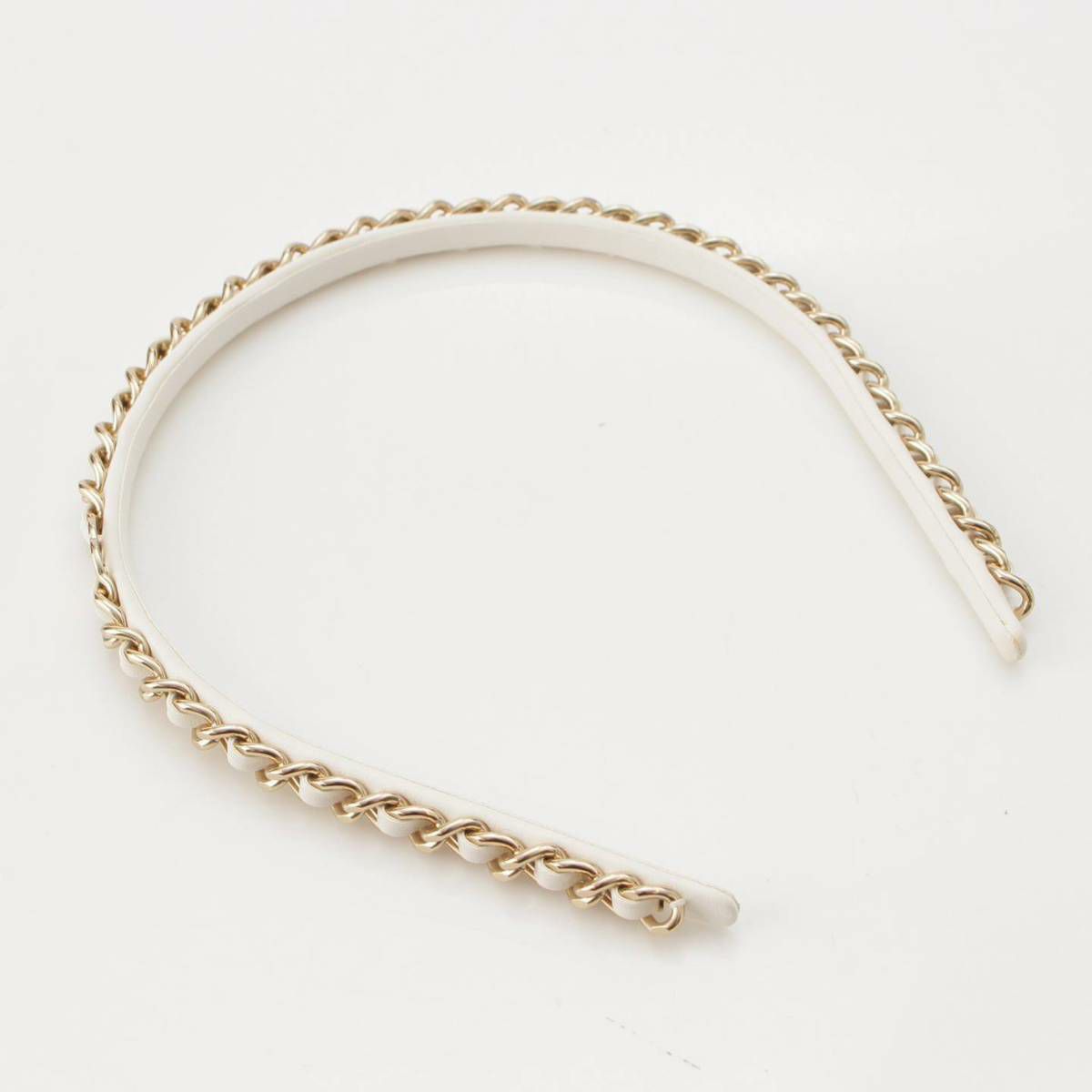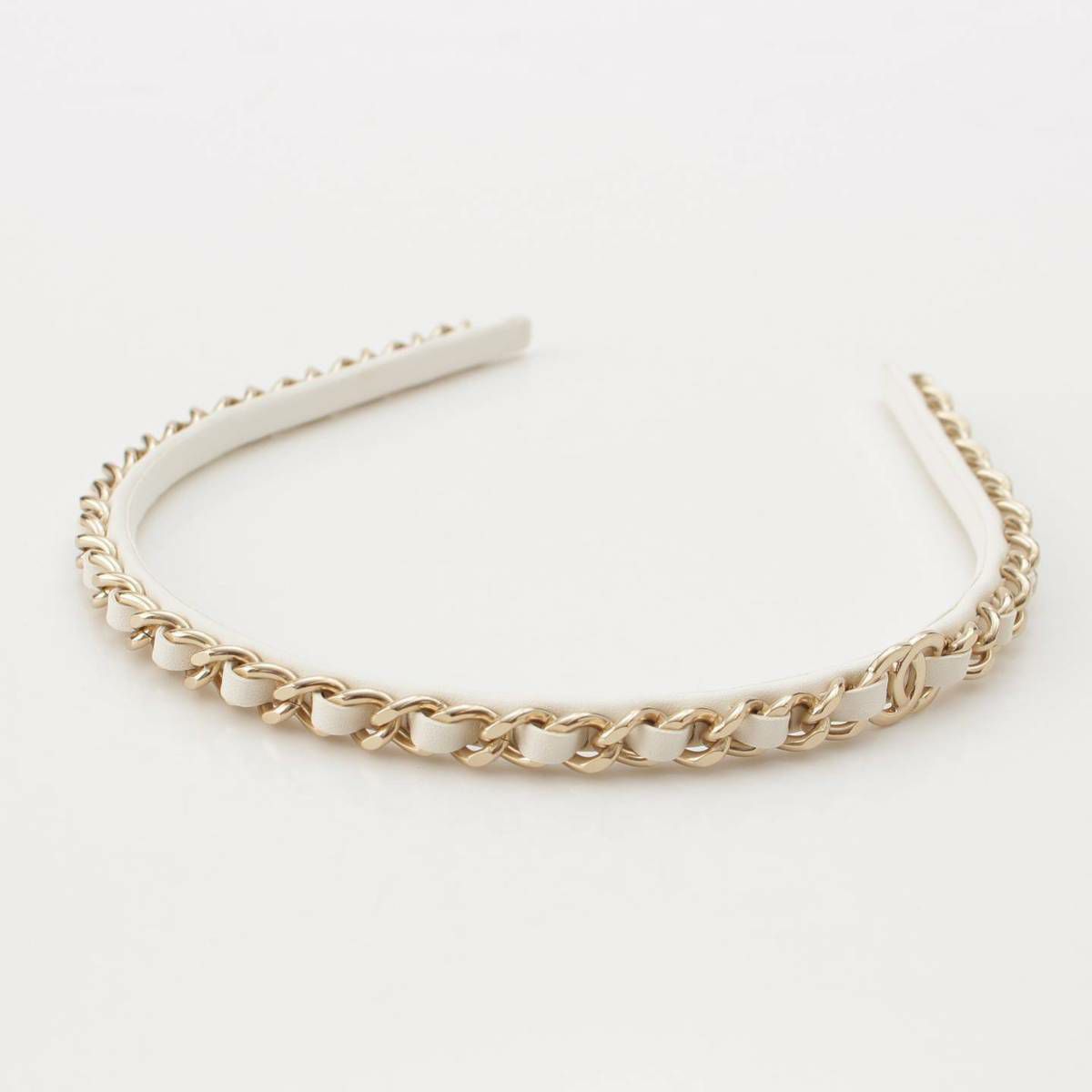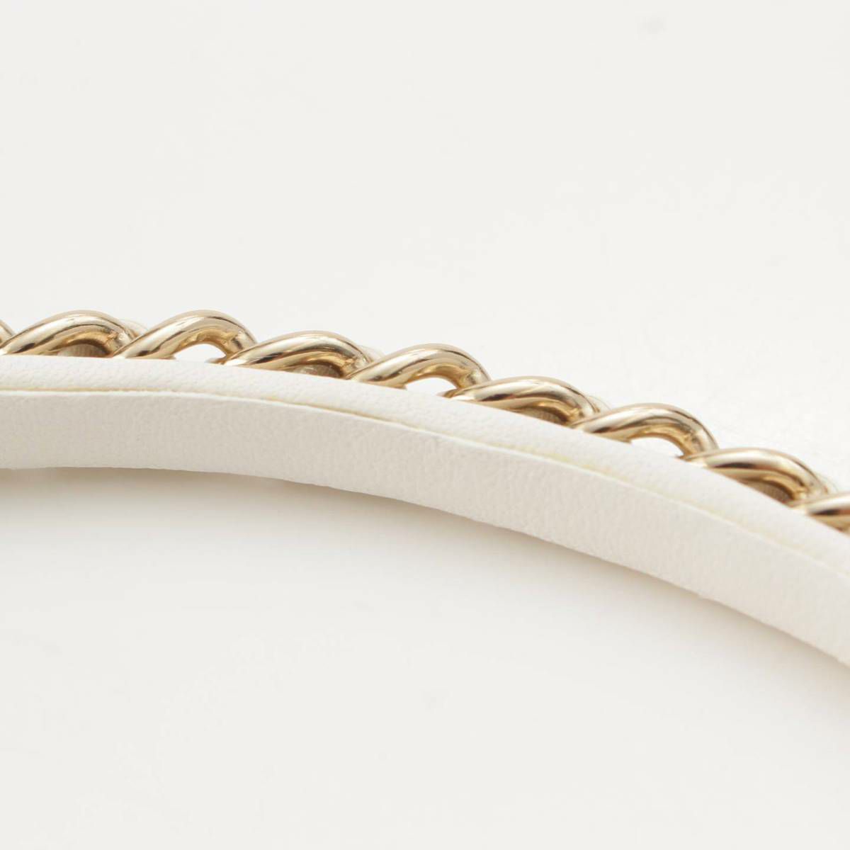 シャネル Chanel B22S ココマーク チェーンモチーフ レザー カチューシャ ホワイト