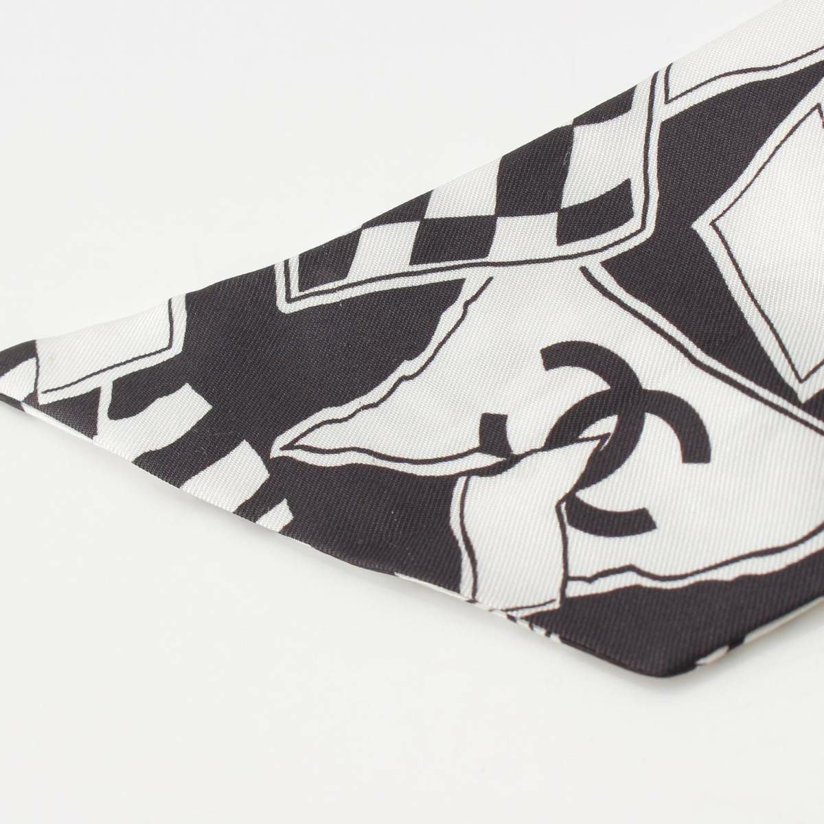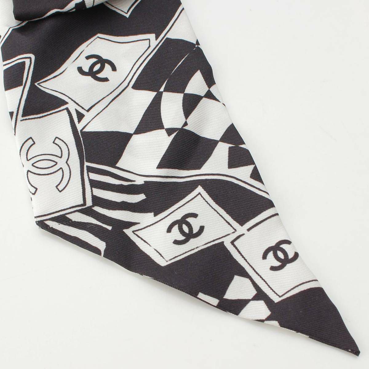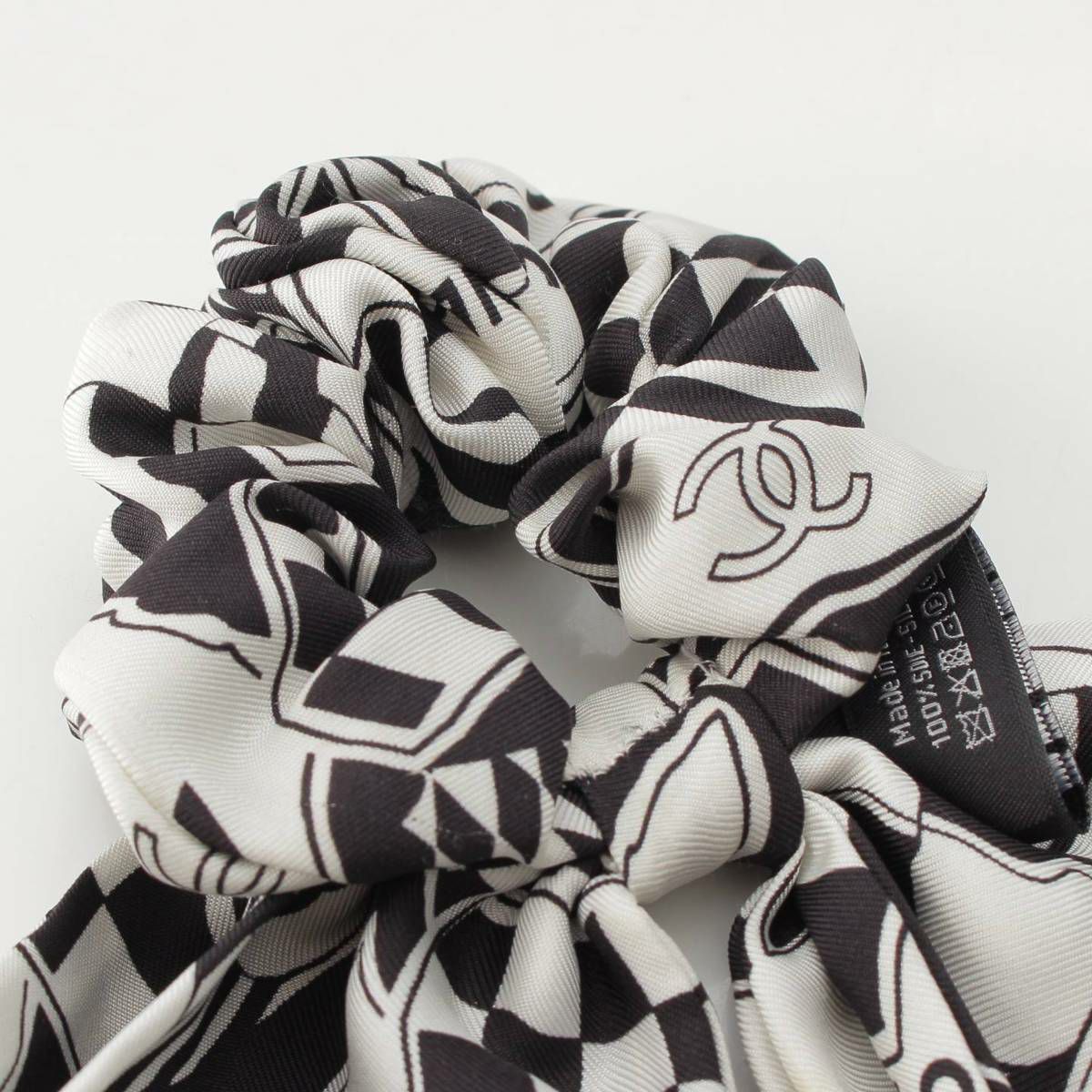 シャネル 23C ココマーク シルク シュシュ リボン ヘアアクセサリー AA8848 ホワイト×ブラック