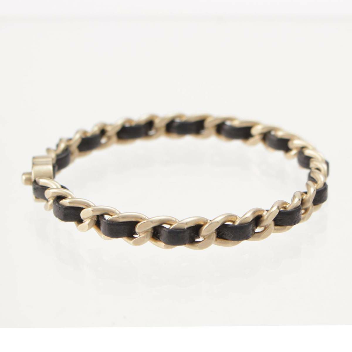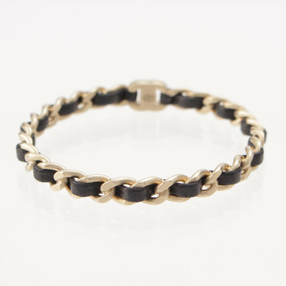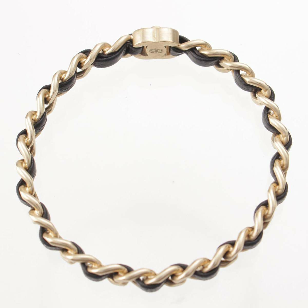 シャネル Chanel B12P チェーンモチーフ ココマーク レザー ブレスレット バングル ブラック×シルバー