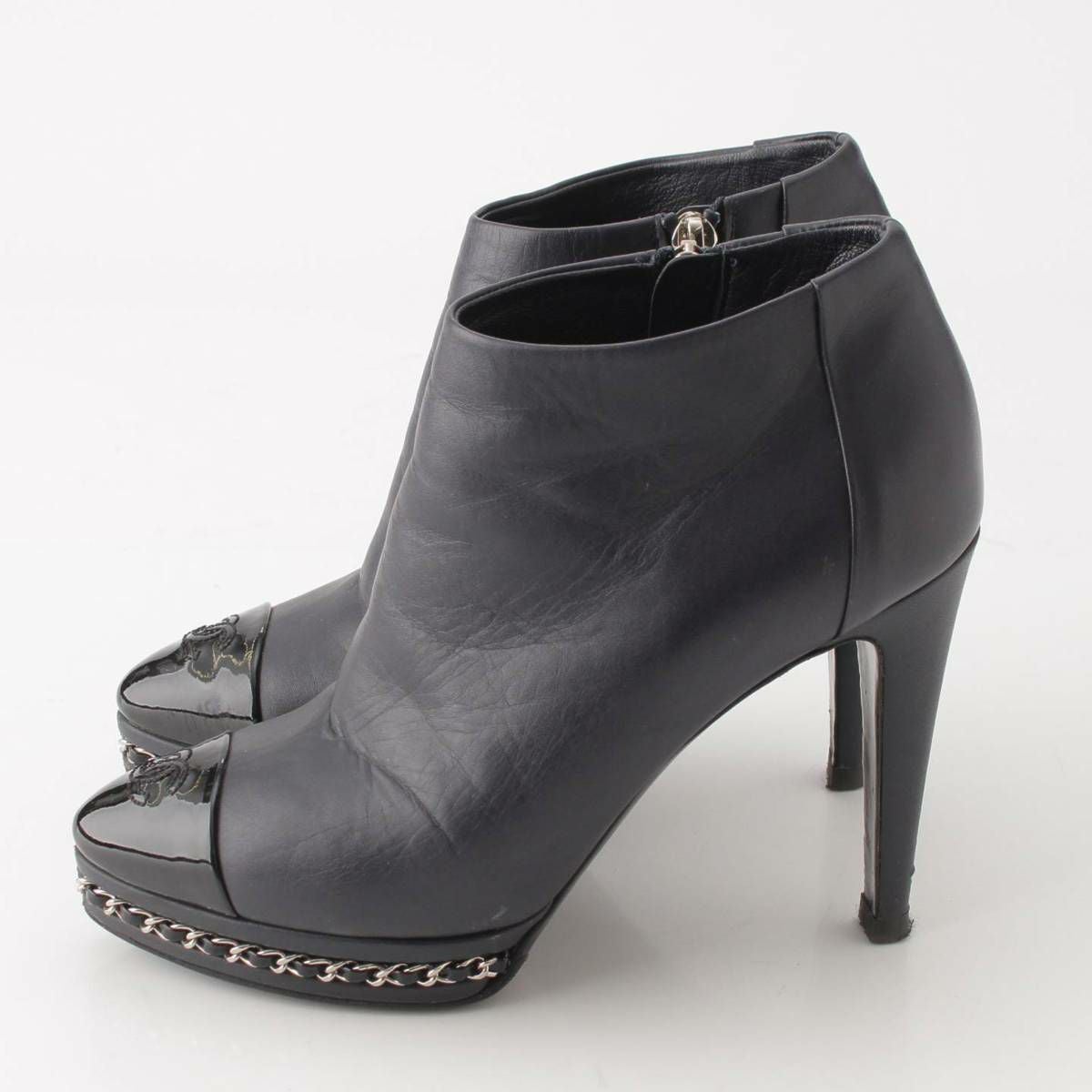 シャネル Chanel ココマーク チェーン サイドジップ アンクル ショートブーツ ブラック 36 1/2 36 1/2