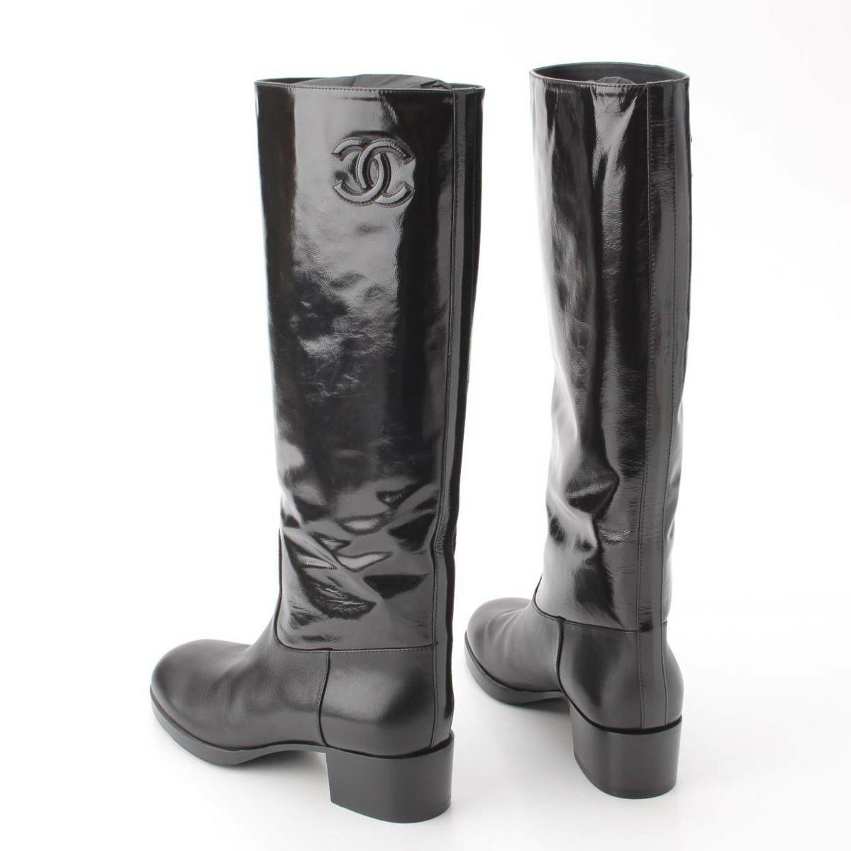 シャネル Chanel 21A ココマーク パテント レザー ロングブーツ G37985 ブラック 39