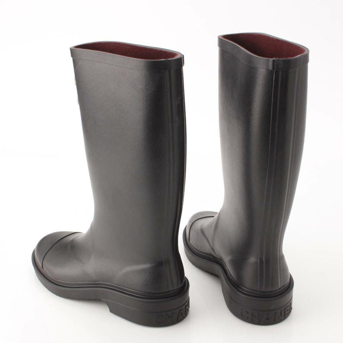 シャネル Chanel 22A ココマーク ラバー ロング レインブーツ 長靴 G38355 ブラック 36