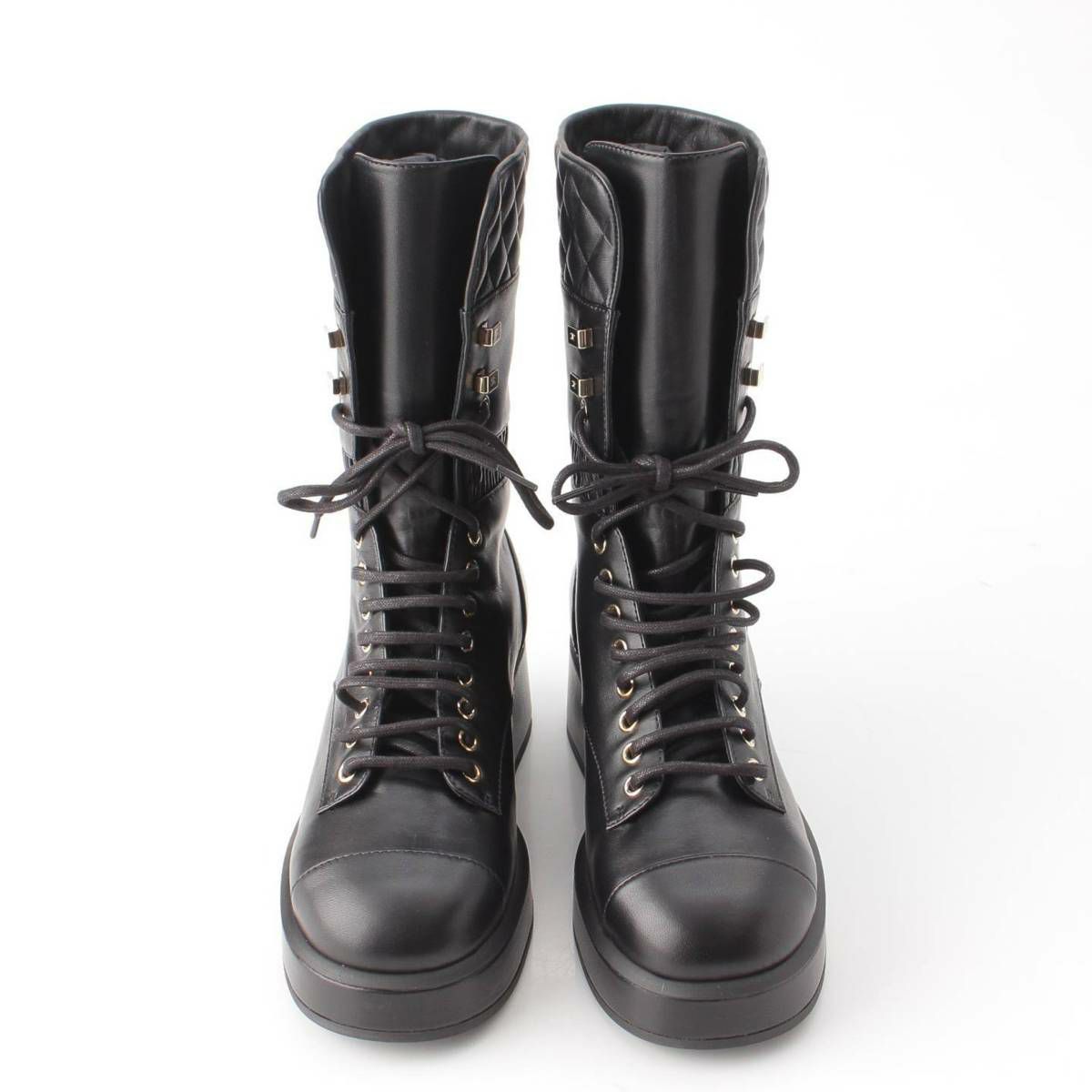 シャネル Chanel 21K ココマーク マトラッセ レースアップ ミドルブーツ G37956 ブラック 38