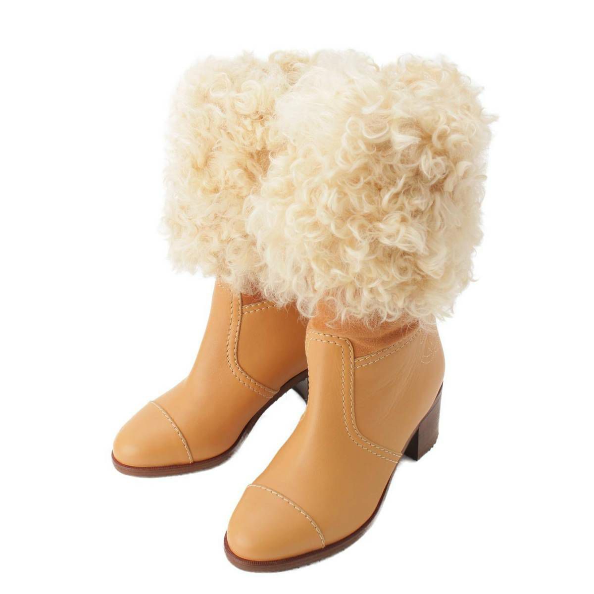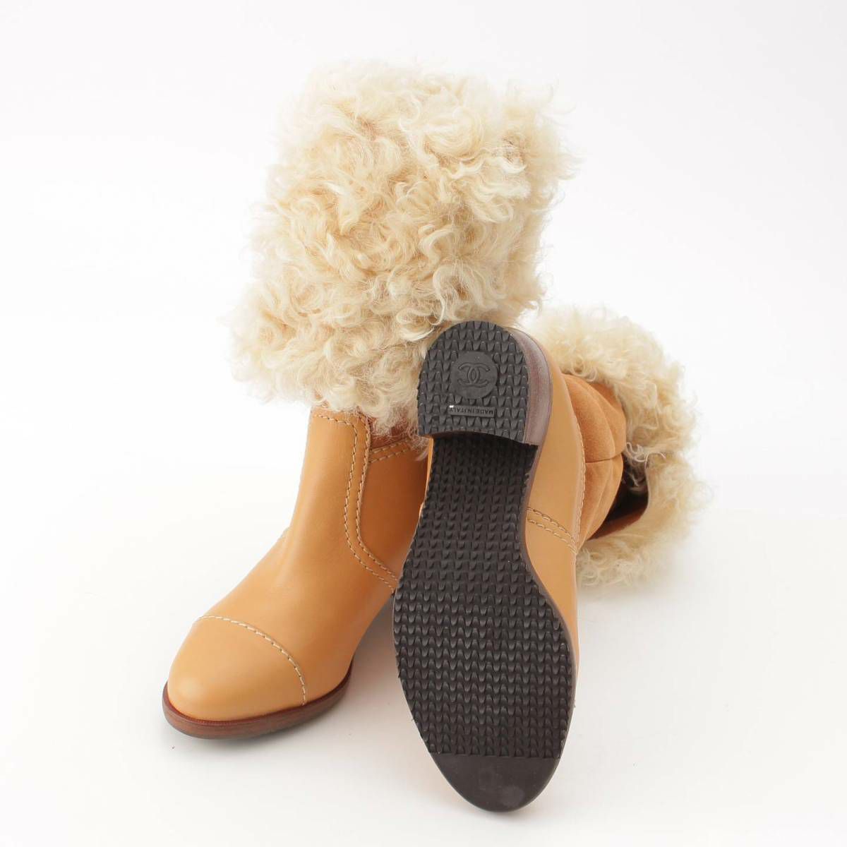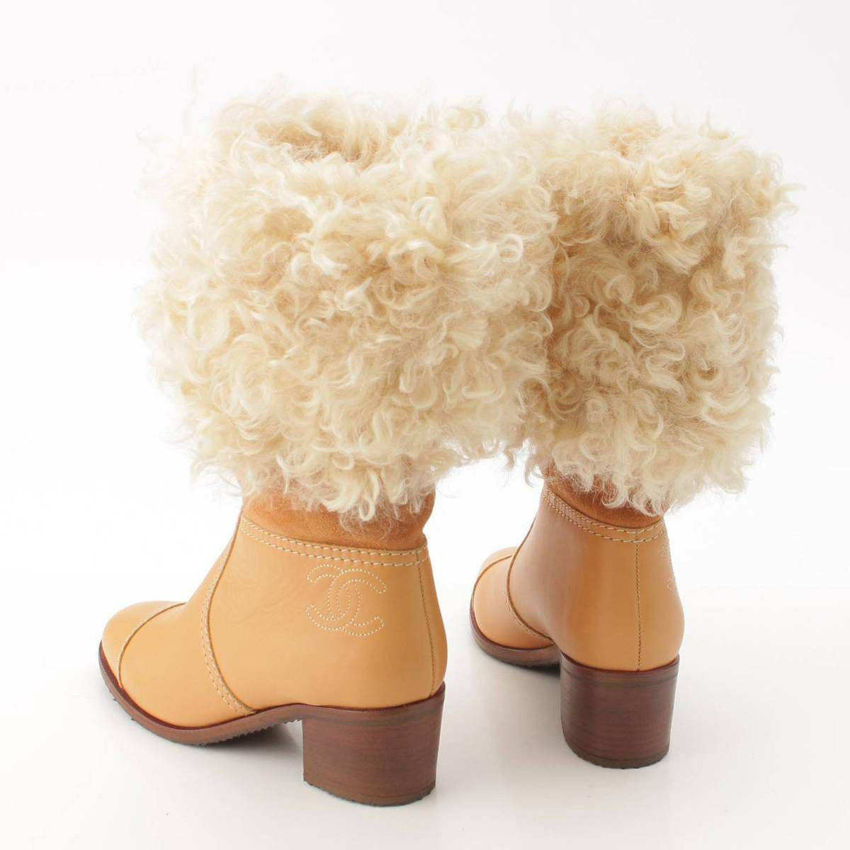 シャネル Chanel シープスキン スエード レザー ムートン ロング ブーツ G31039 ベージュ 38