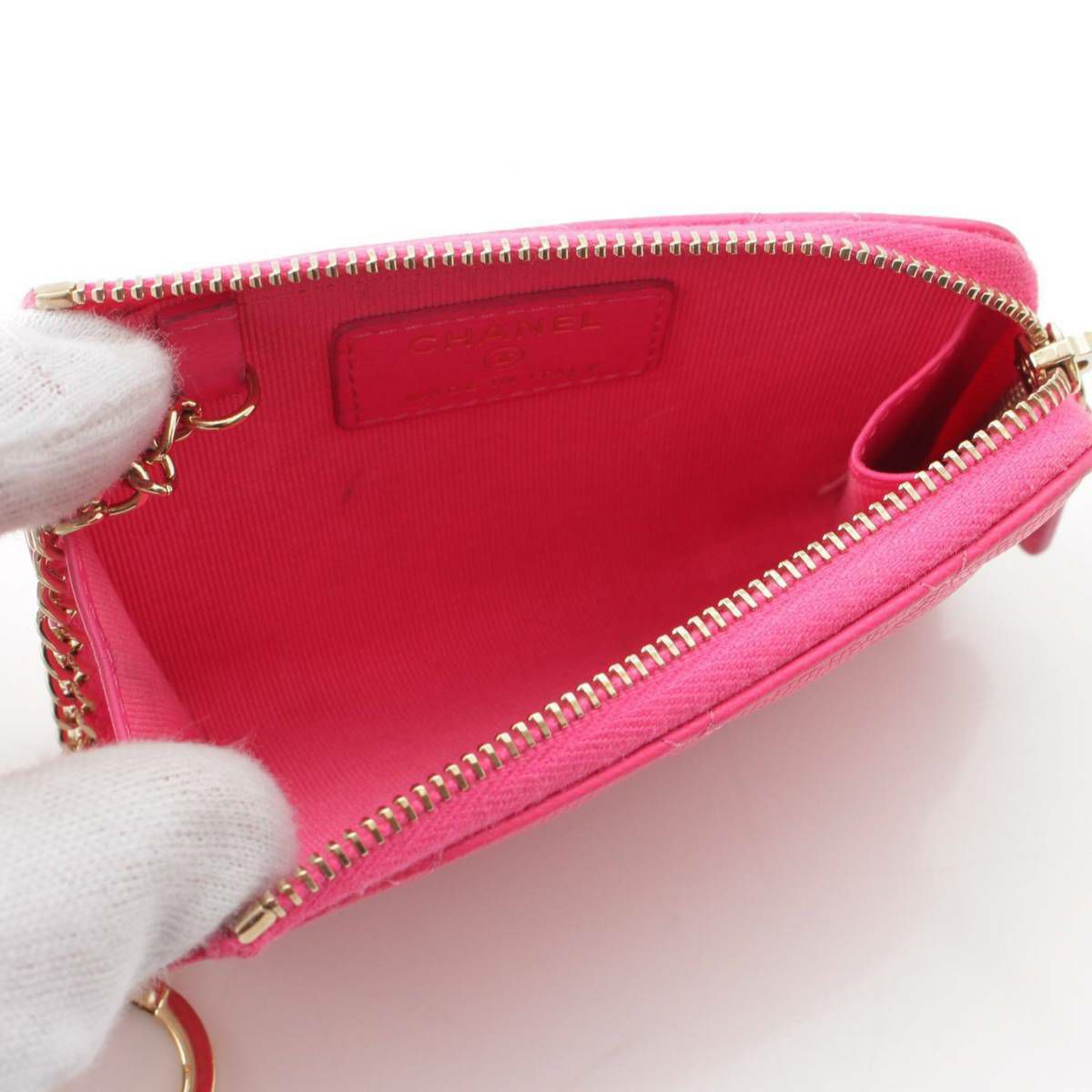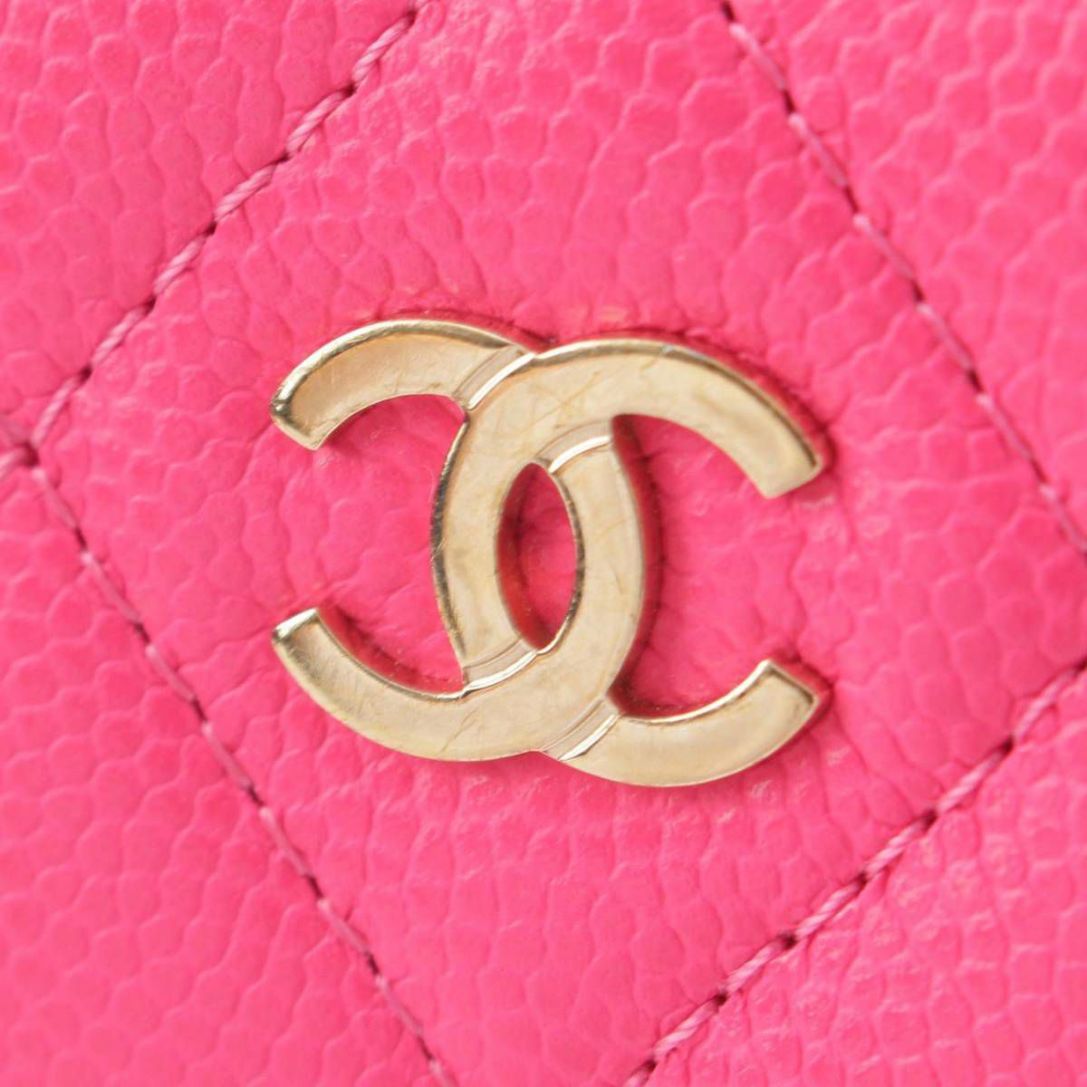 シャネル Chanel ココマーク マトラッセ キャビアスキン L字 キーチェーン コインケース AP0221 ピンク