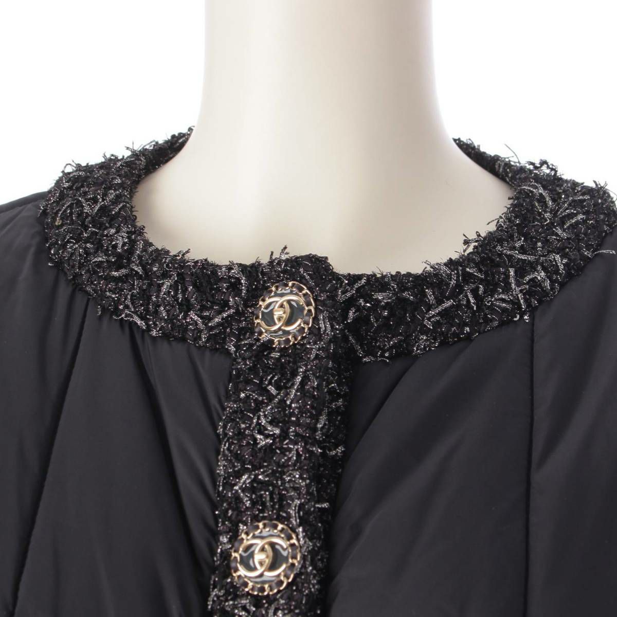 シャネル 18AW ツイード ココボタン 4ポケット ダウンジャケット P60016 ブラック 36