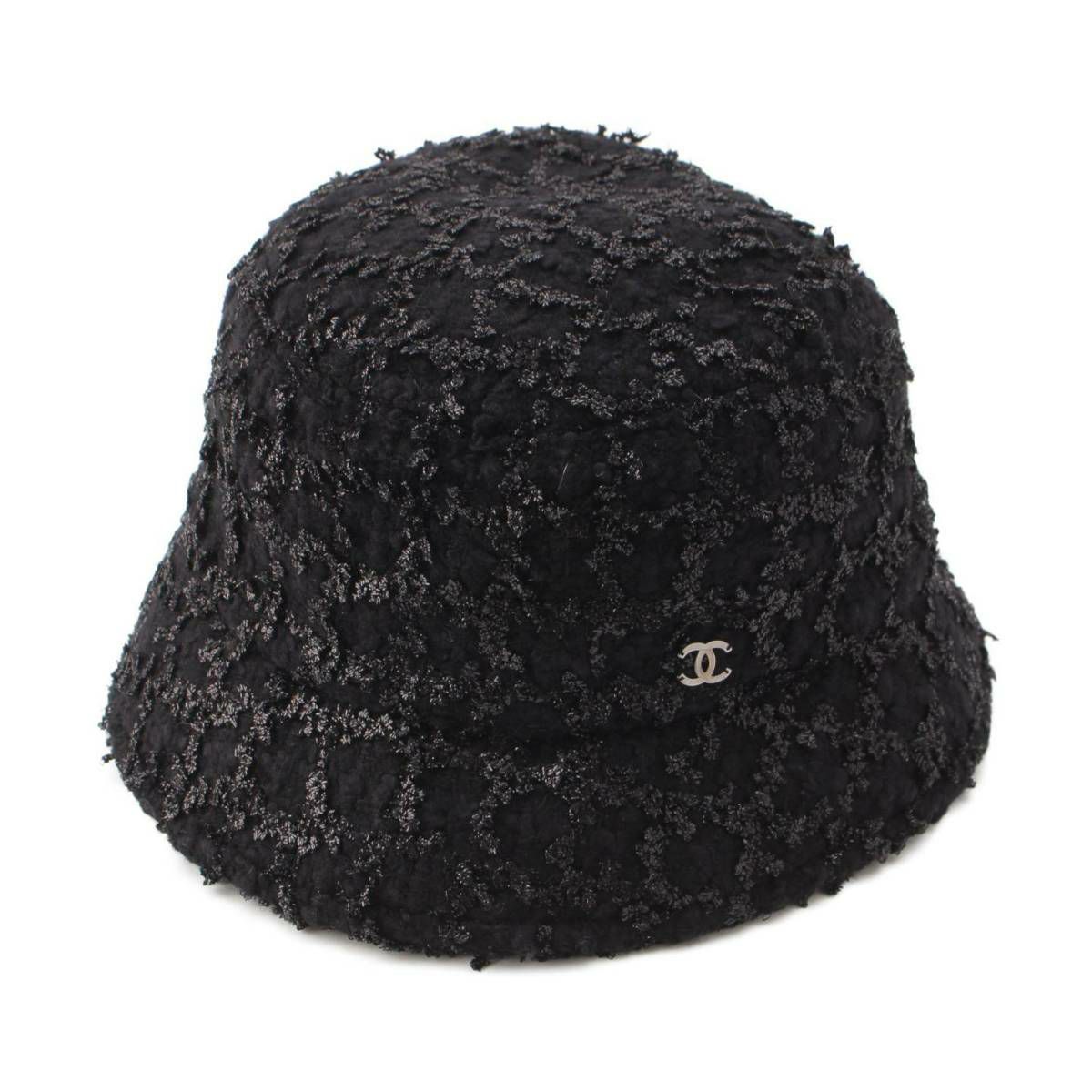 シャネル Chanel 22K マトラッセ ココマーク ツイード バケットハット 帽子 ブラック S