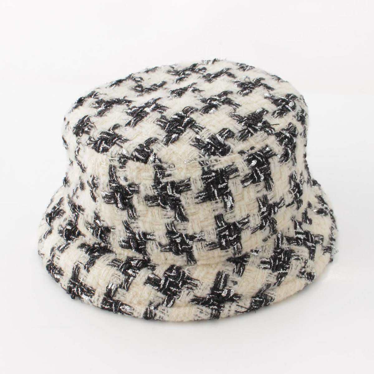 シャネル ツイード ココマーク 千鳥柄 帽子 バケットハット クローシュ ホワイト M