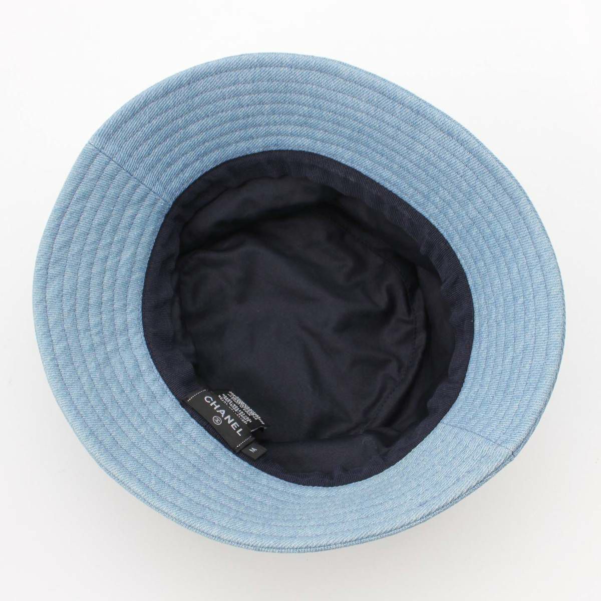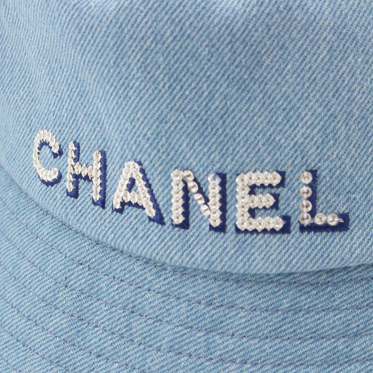 シャネル ロゴ スパンコール 刺繍 デニム バケットハット 帽子 ブルー M