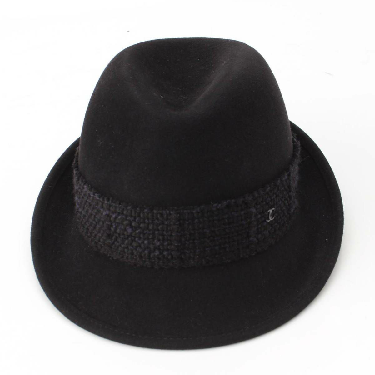 シャネル ココマーク ツイード ラパン フェルトハット 帽子 ブラック M