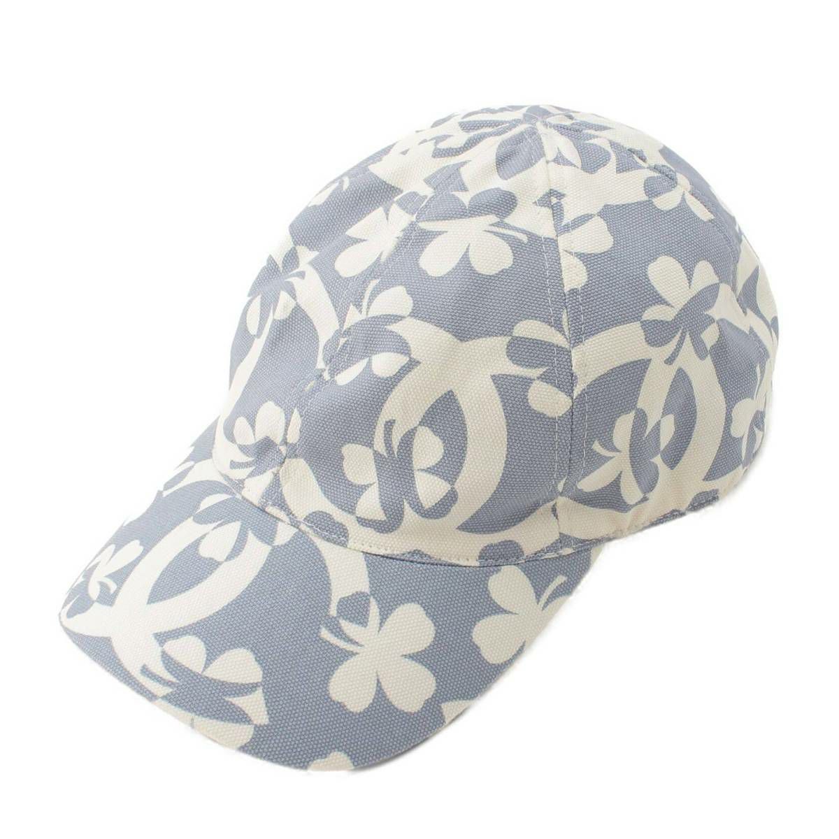 シャネル Chanel クローバー CC ココマーク コットン キャップ 帽子 ブルー×ホワイト M