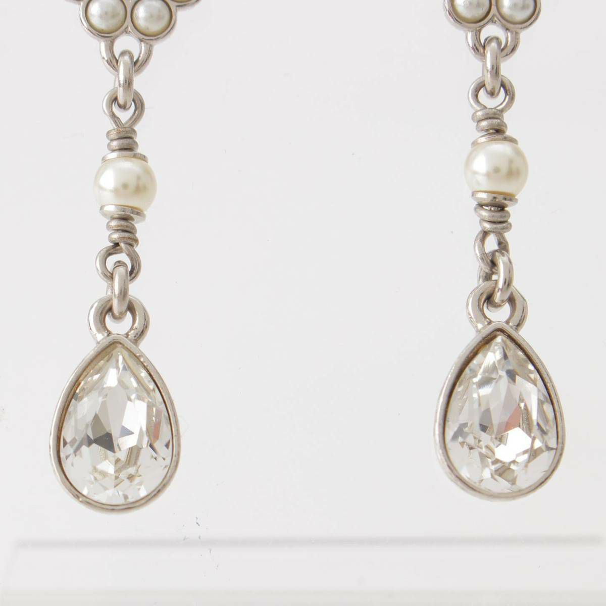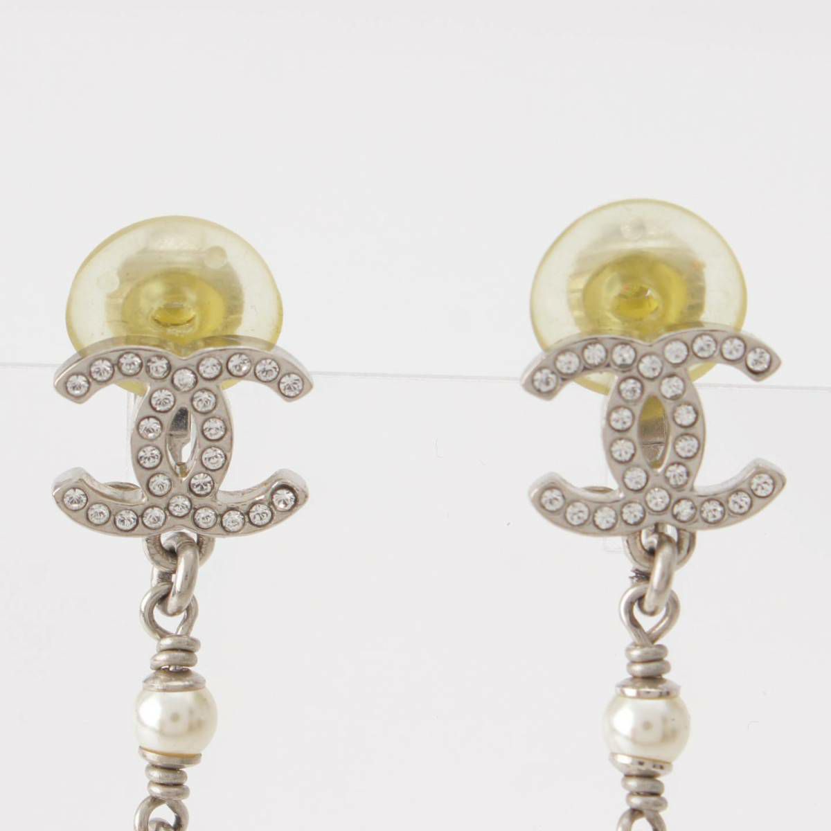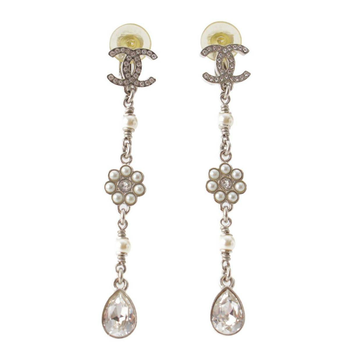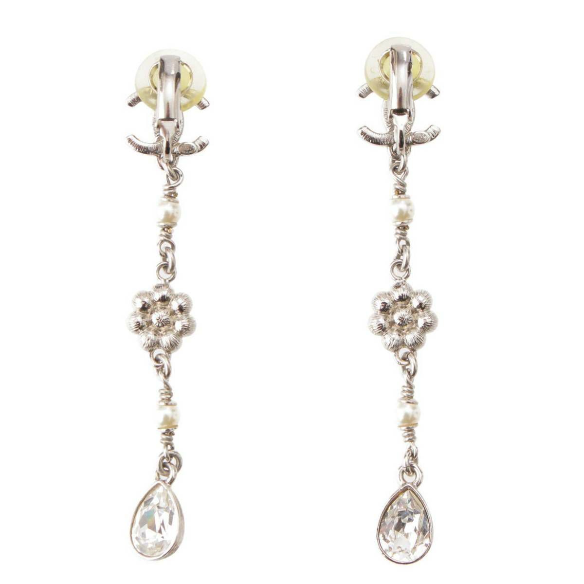 シャネル Chanel B21K ココマーク ラインストーン フラワー イヤリング スイング シルバー