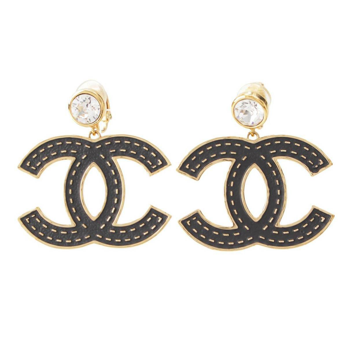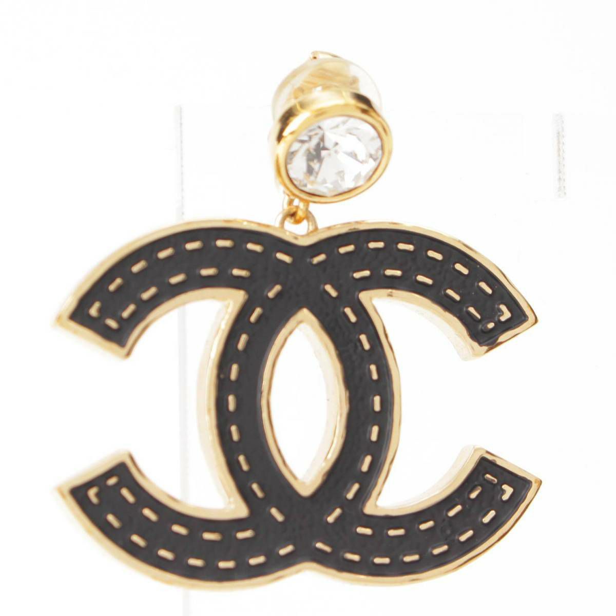 シャネル Chanel B23S ココマーク ラインストーン イヤリング ピアス ゴールド×ブラック
