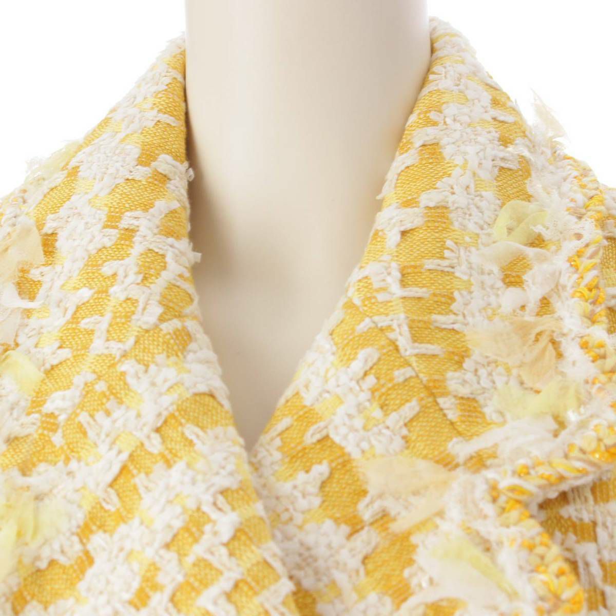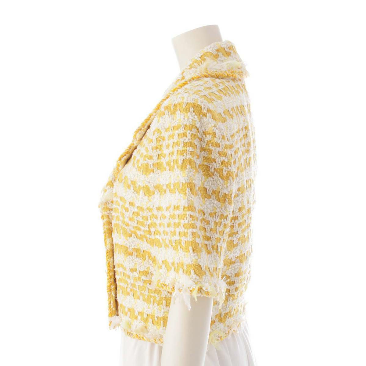 シャネル Chanel 18S ツイード フリンジ 半袖 ショート クロップド ジャケット P58733 イエロー 38