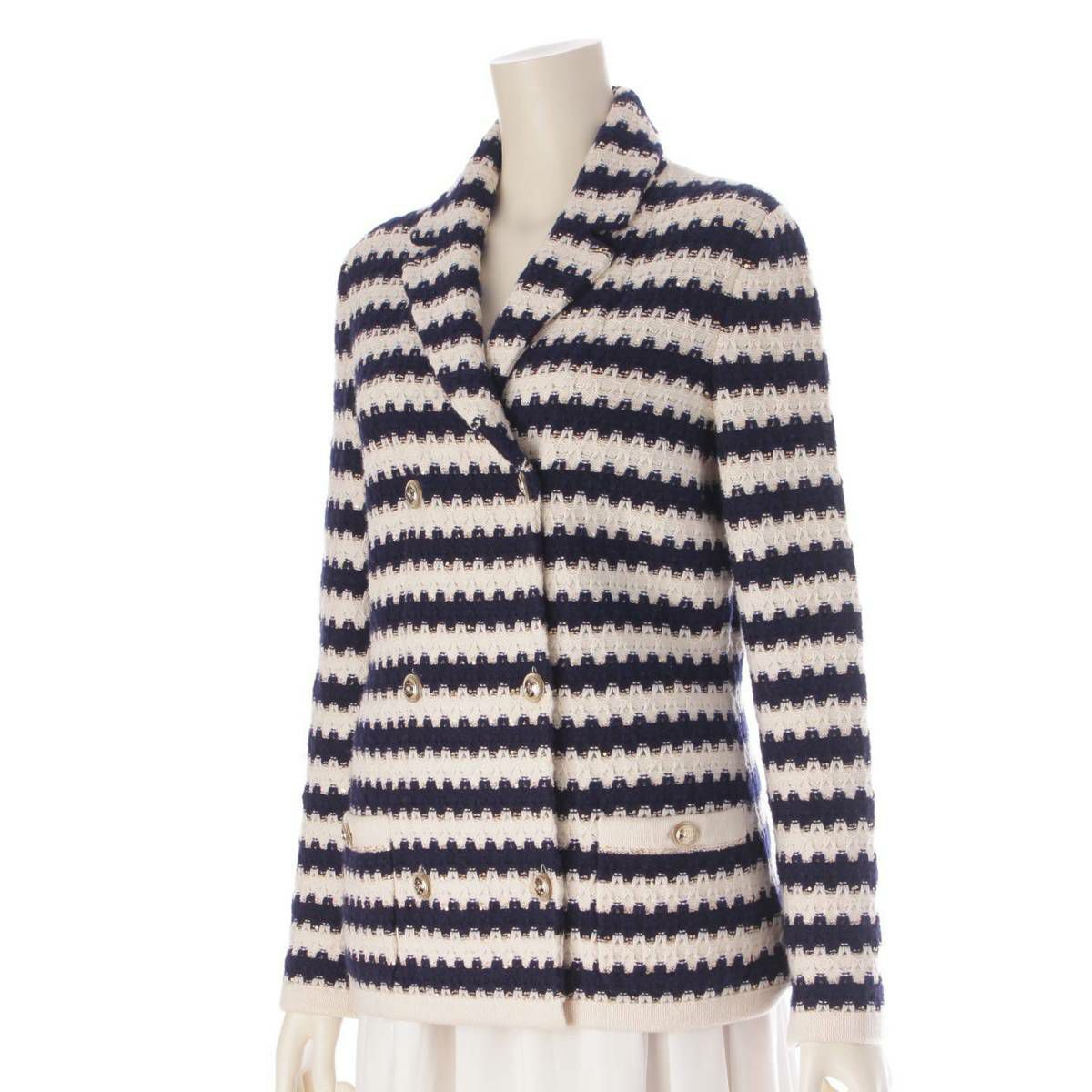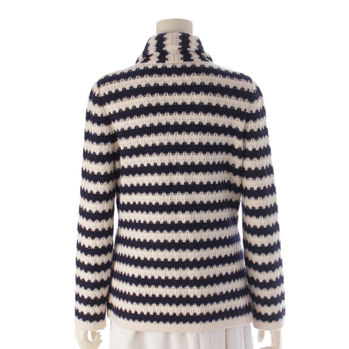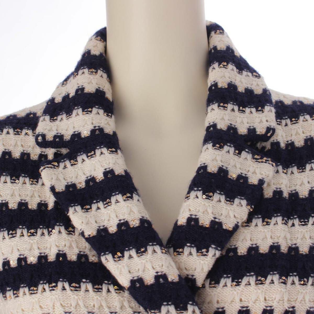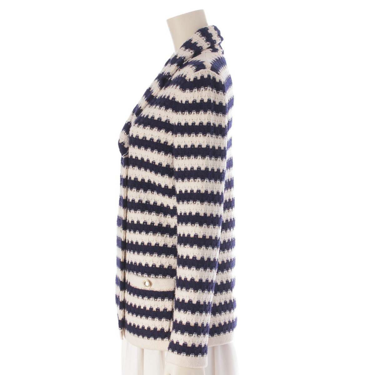 シャネル Chanel 21C ボーダー スパンコール ニット ジャケット P70334 ネイビー×ホワイト 36