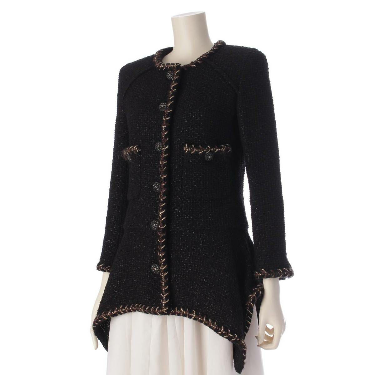 シャネル 18K ツイード ココマーク ココボタン ペプラム ジャケット P59949 ブラック 34