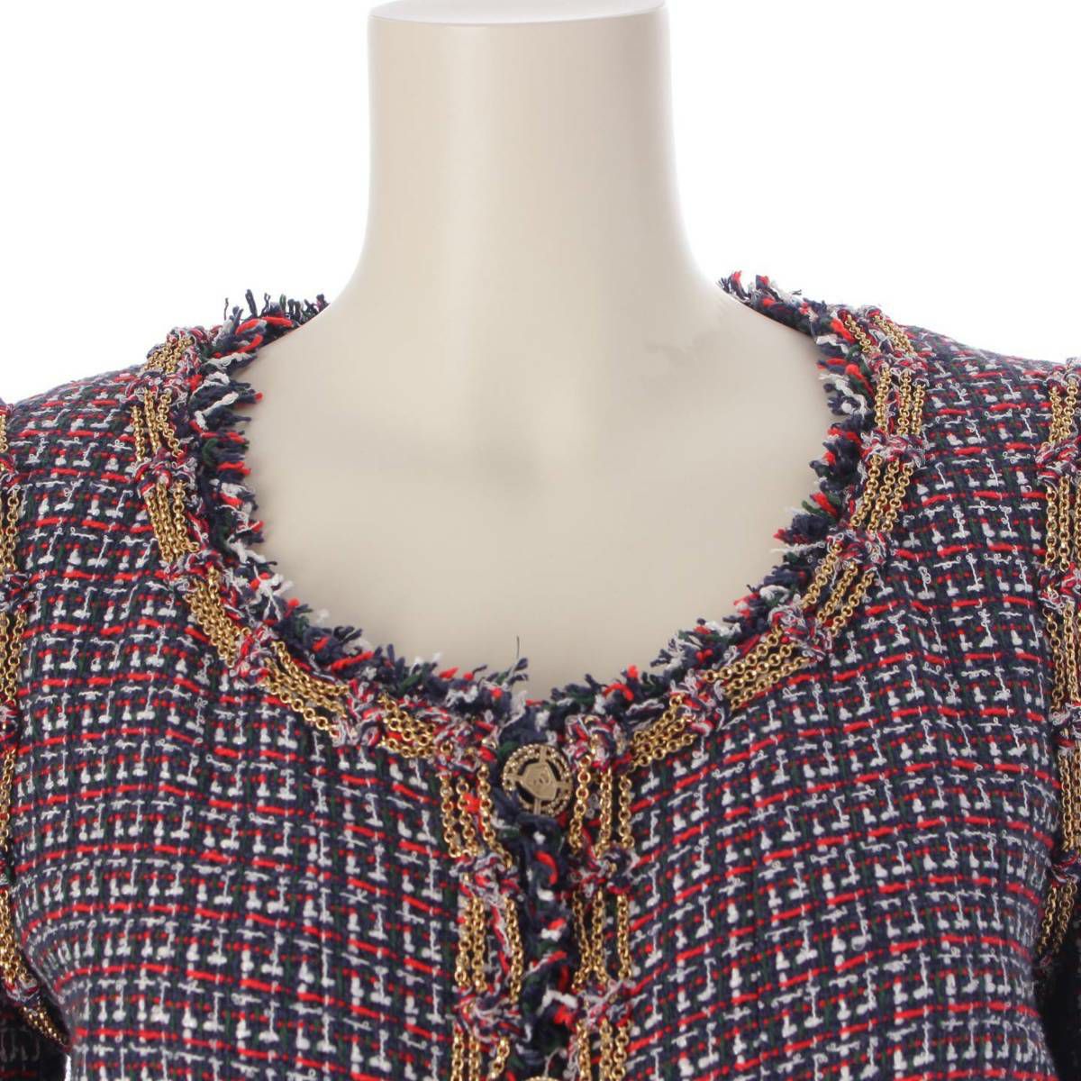 シャネル 08P ココマーク エンブレム チェーン ツイードジャケット P33184 ネイビー レッド 36