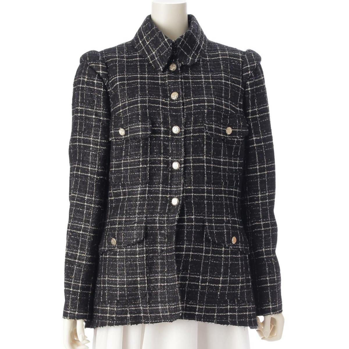 シャネル 08C ツイード ラメ ハサミモチーフボタン チェック ジャケット P32182 ブラック 48