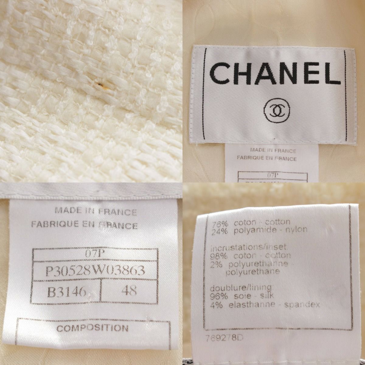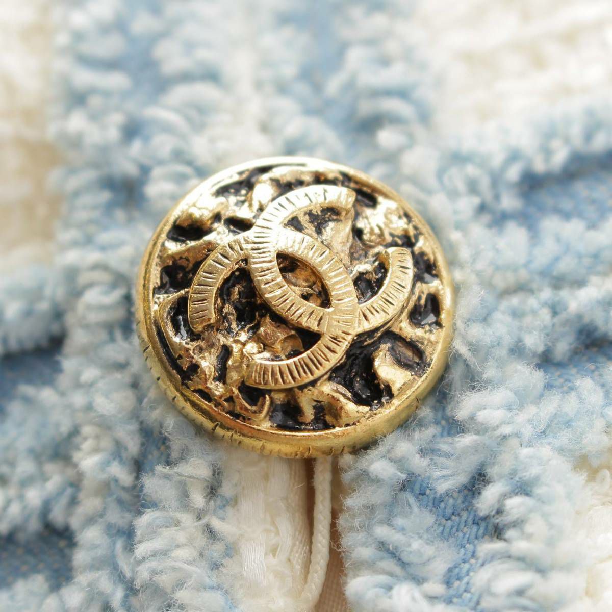 シャネル Chanel 07P ツイード デニム ココボタン ジャケット コート P30528 ホワイト×ブルー 48