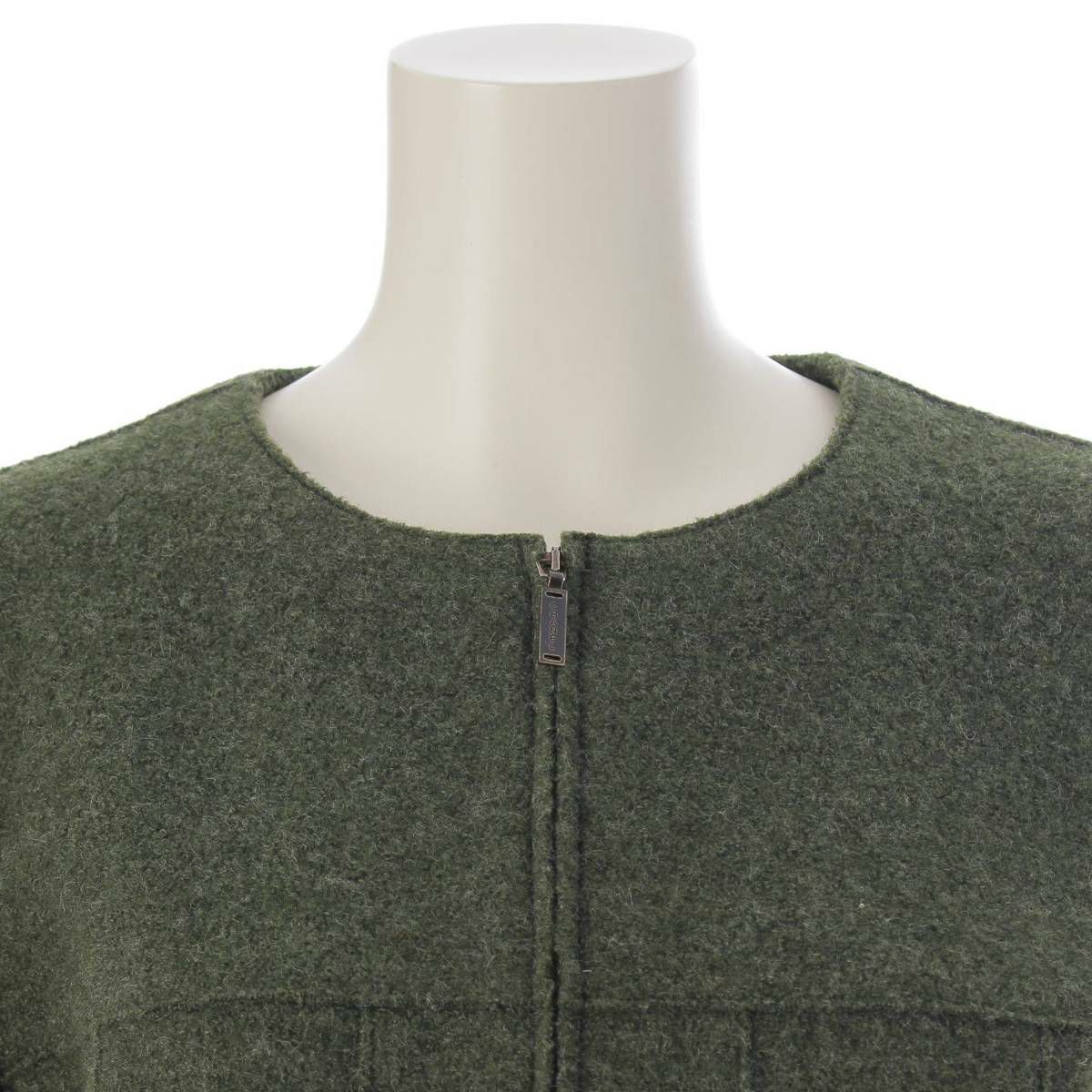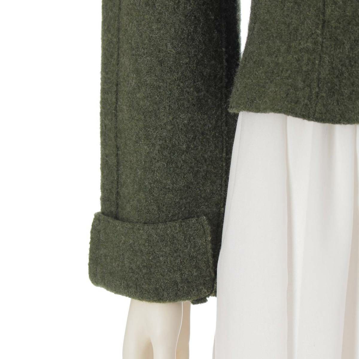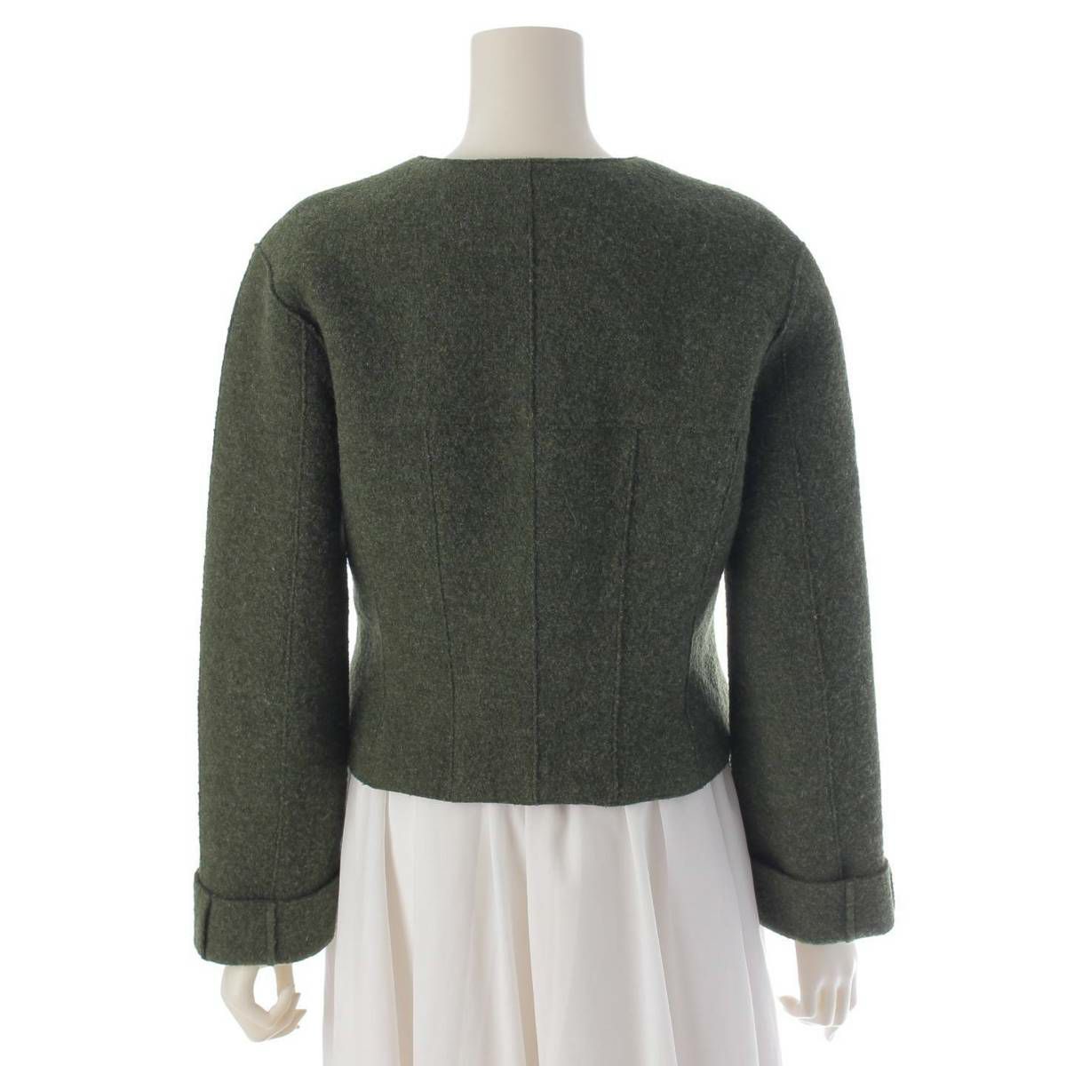シャネル 99A IDENTIFICATION ノーカラー ウールジャケット P14025 ダークグリーン 42