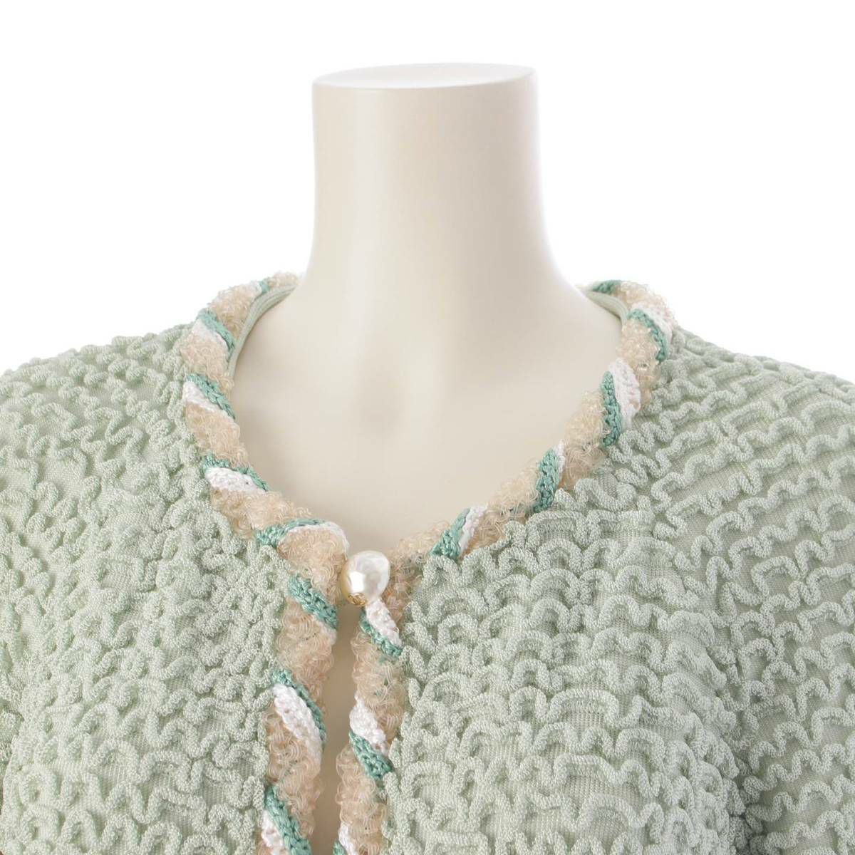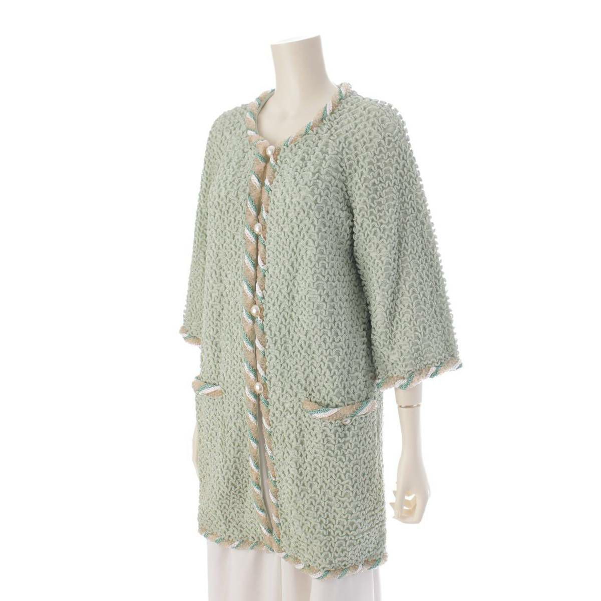 シャネル Chanel ココマーク パールボタン ロングカーディガン ノーカラーコート P43832 グリーン 34