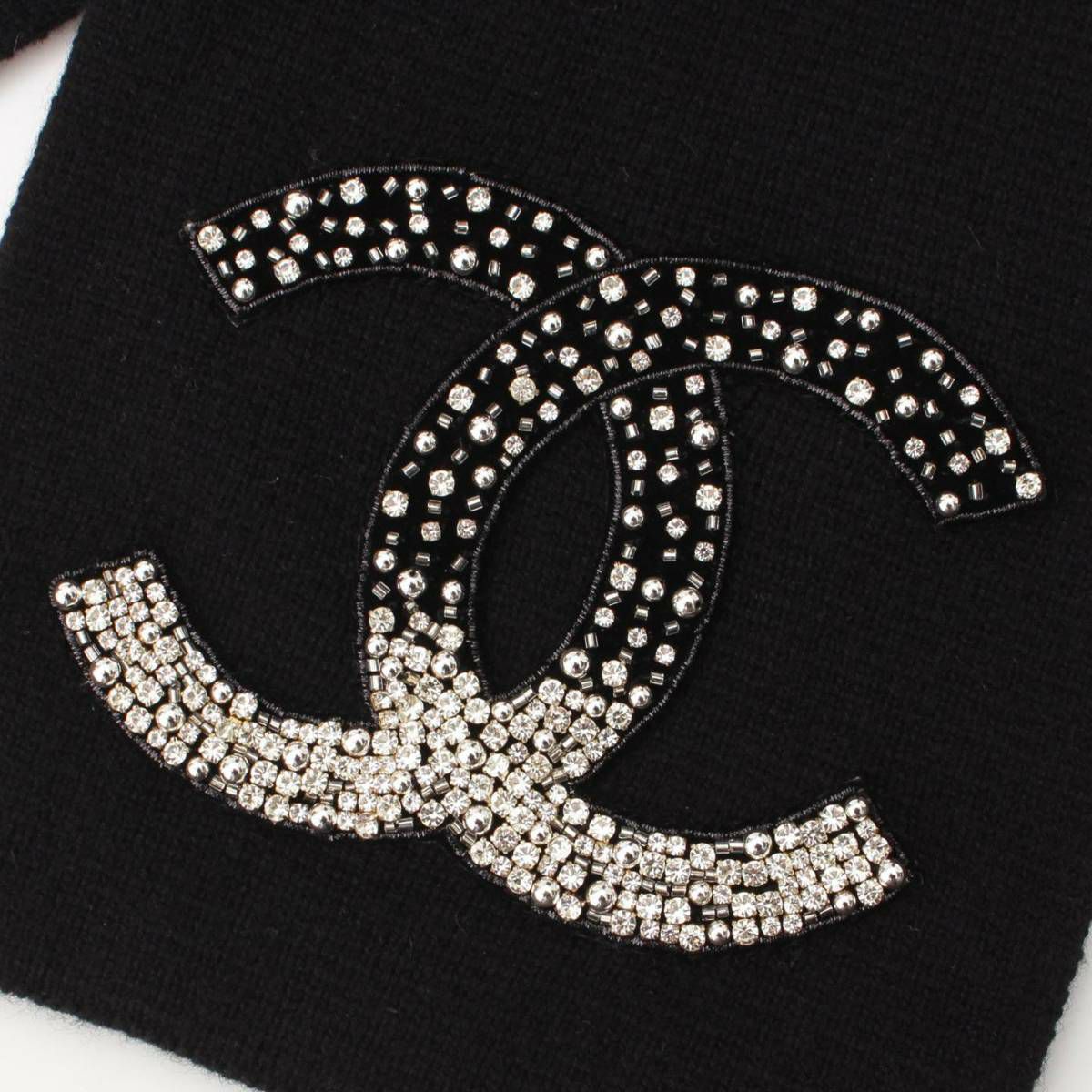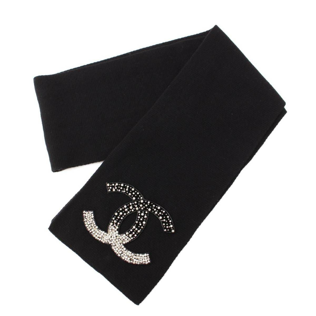 シャネル Chanel 20AW ココマーク ビジュー カシミヤ マフラー ストール ブラック