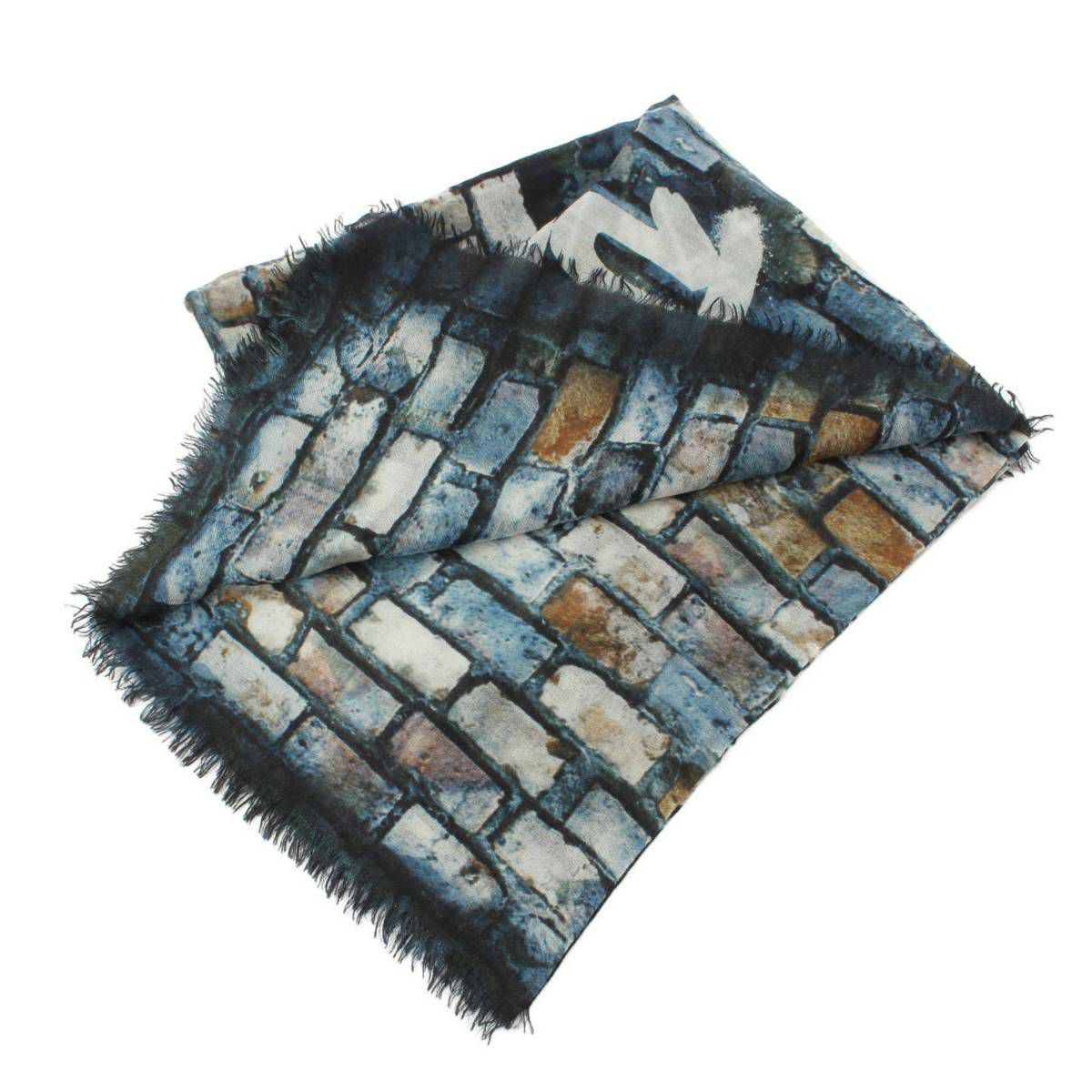 シャネル Chanel ココマーク カシミヤ100% グラフィティ プリント ストール ショール ブルー系
