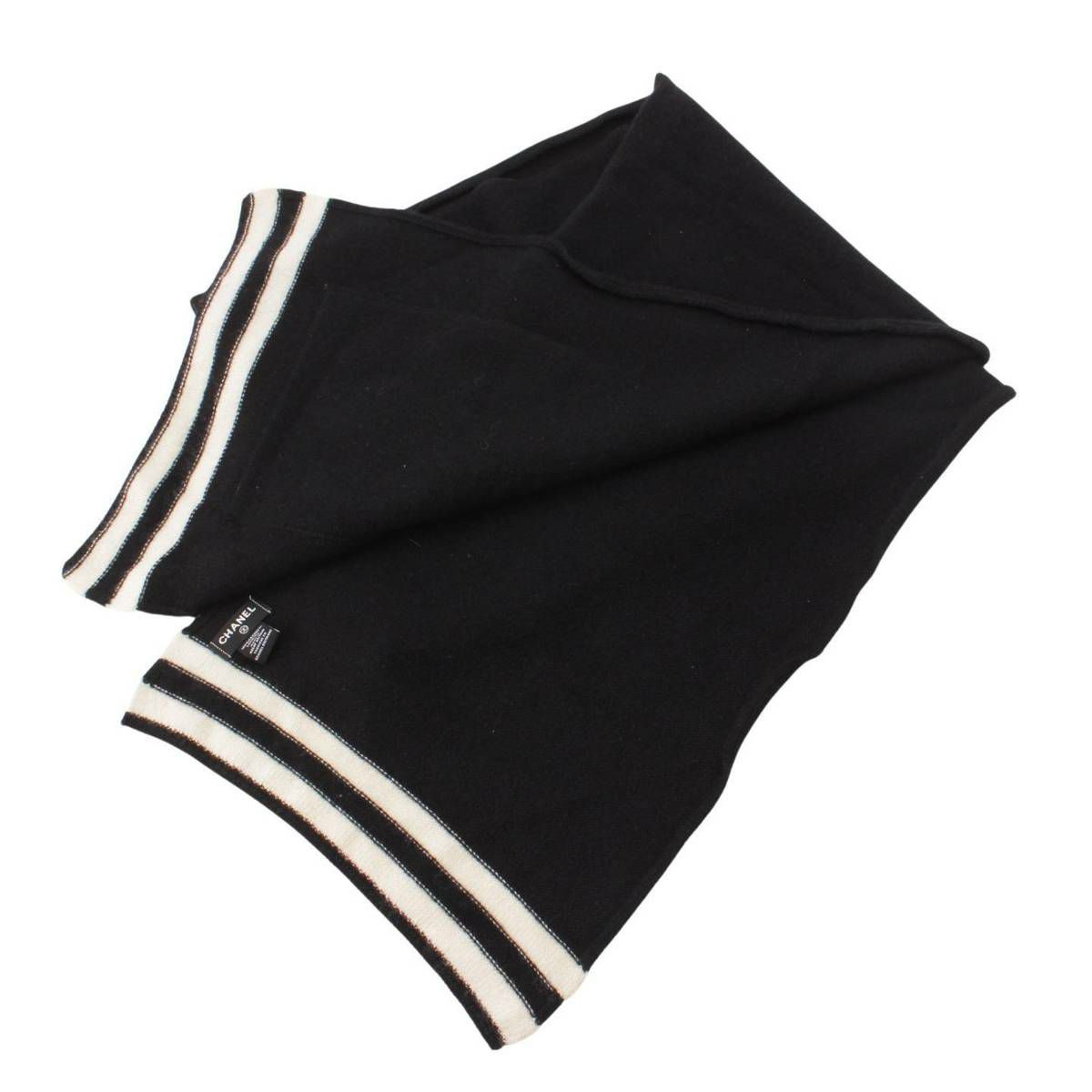 シャネル ココマーク ポケット カシミヤ100% マフラー バイカラー ブラック×ホワイト