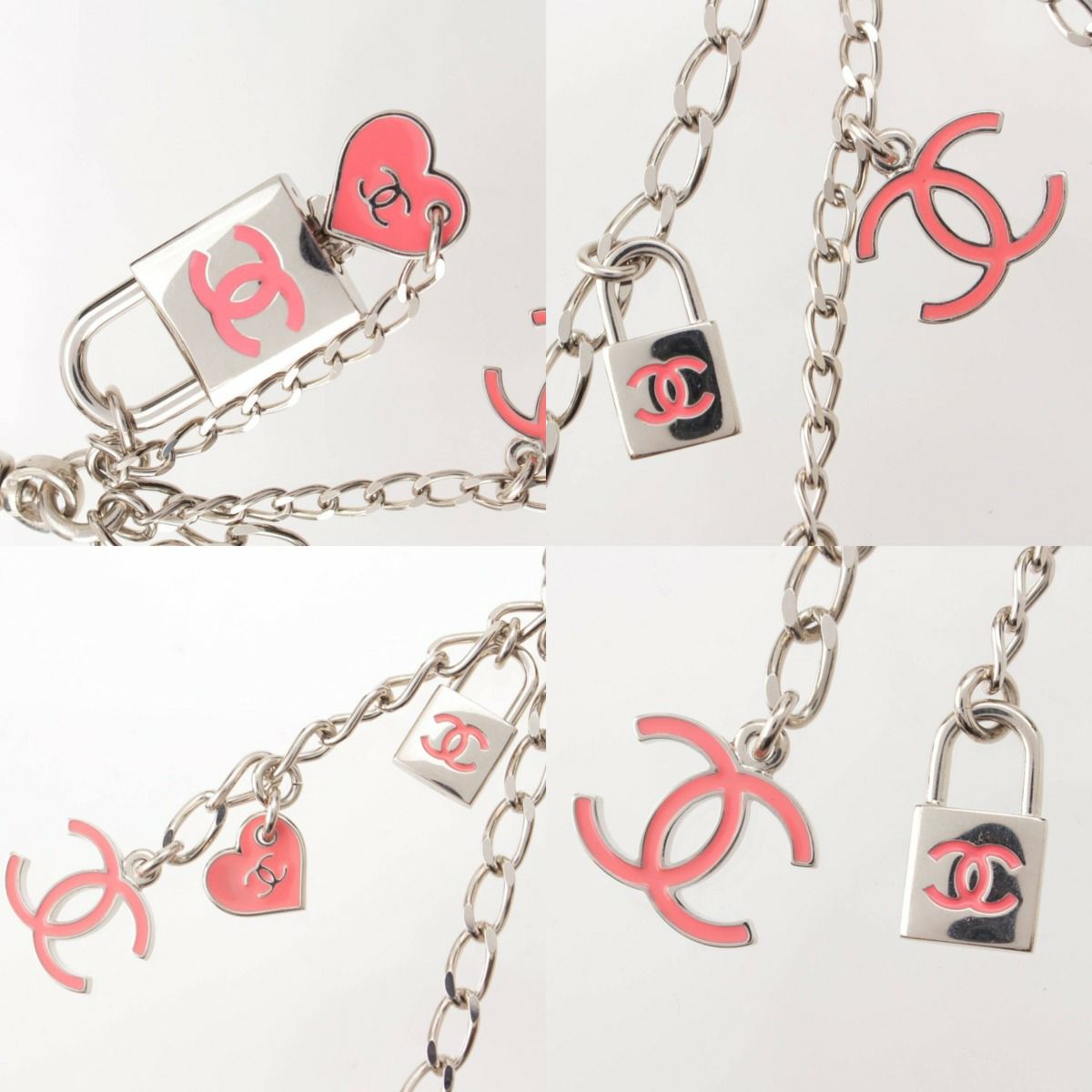 シャネル Chanel 07P ココマーク パドロック 多重チェーン バッグチャーム ホルダー ピンク×シルバー